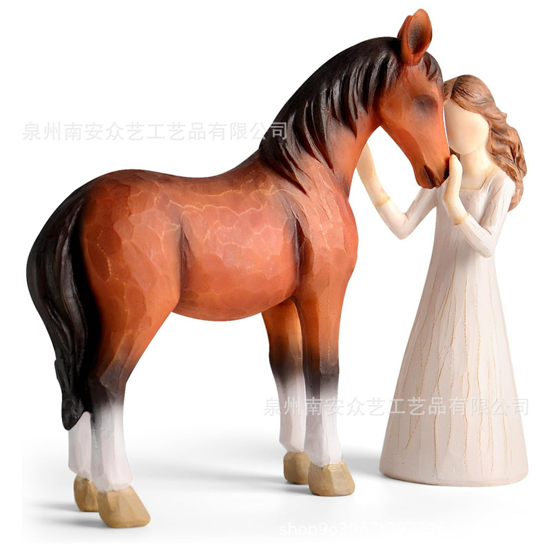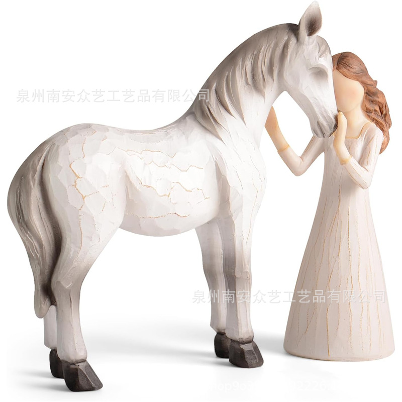 말과 함께 있는 소녀를 위한 국경 간 특별 공급, 말과 함께 있는 소녀의 가장 친한 친구, 동물 피규어, 수지 장식품 선물스토어 가기