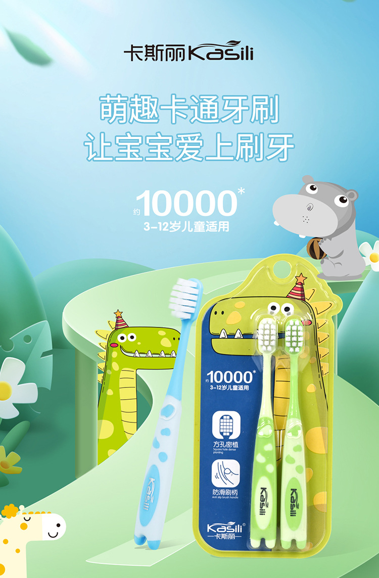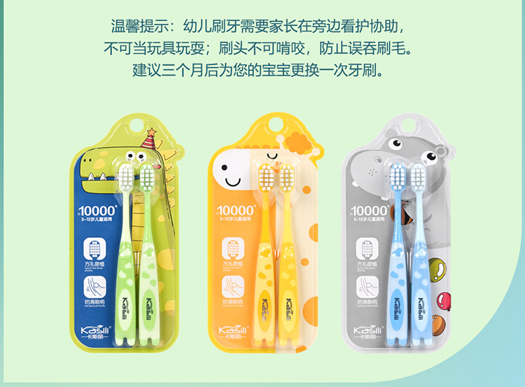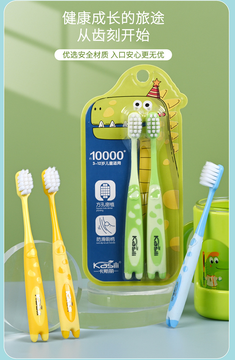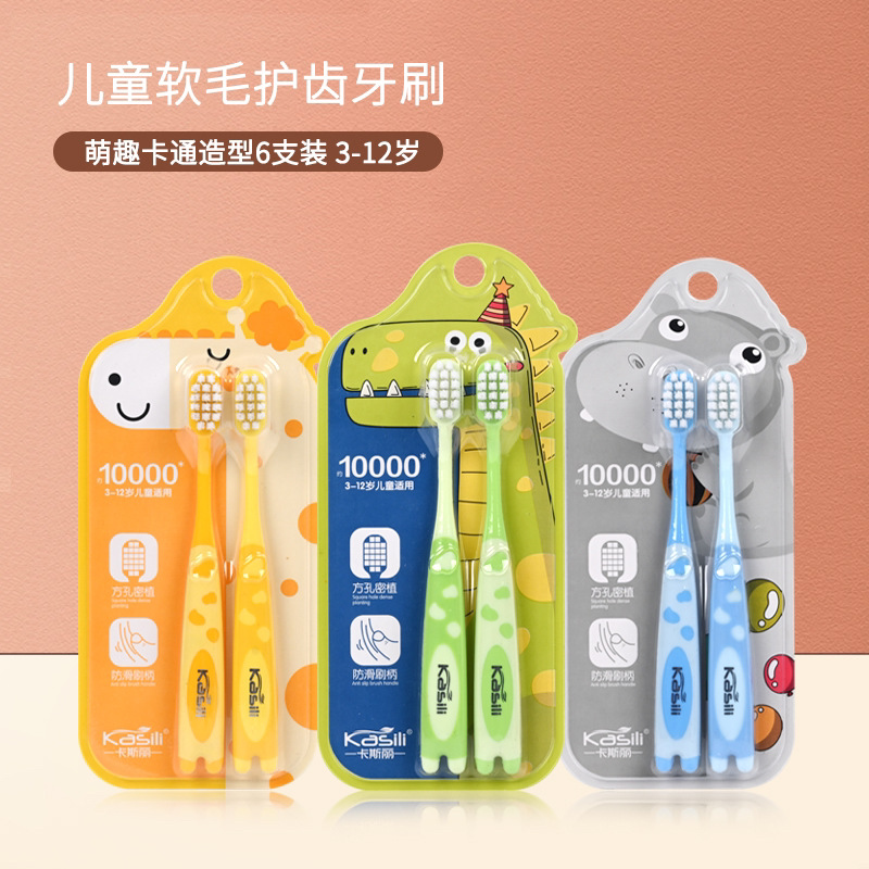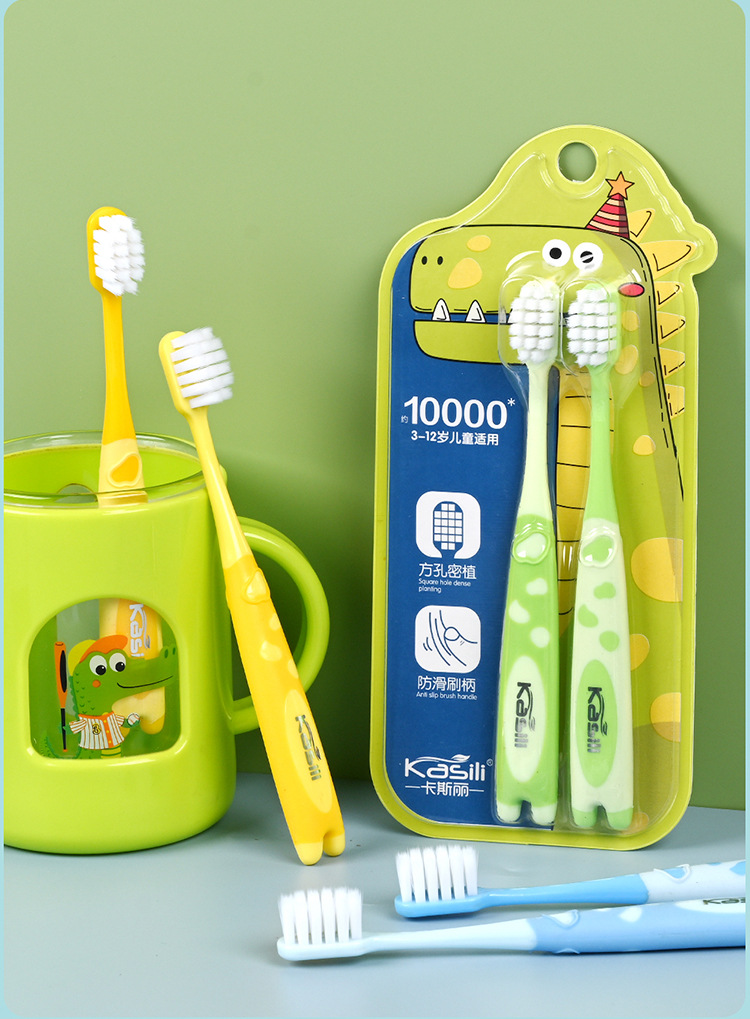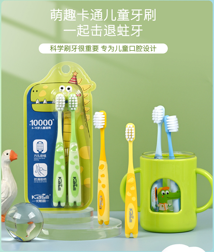 【카슬리】귀여운 2개입 잇몸 보호 칫솔 어린이 3-12세 학생용 매우 부드럽고 귀여운 소프트모