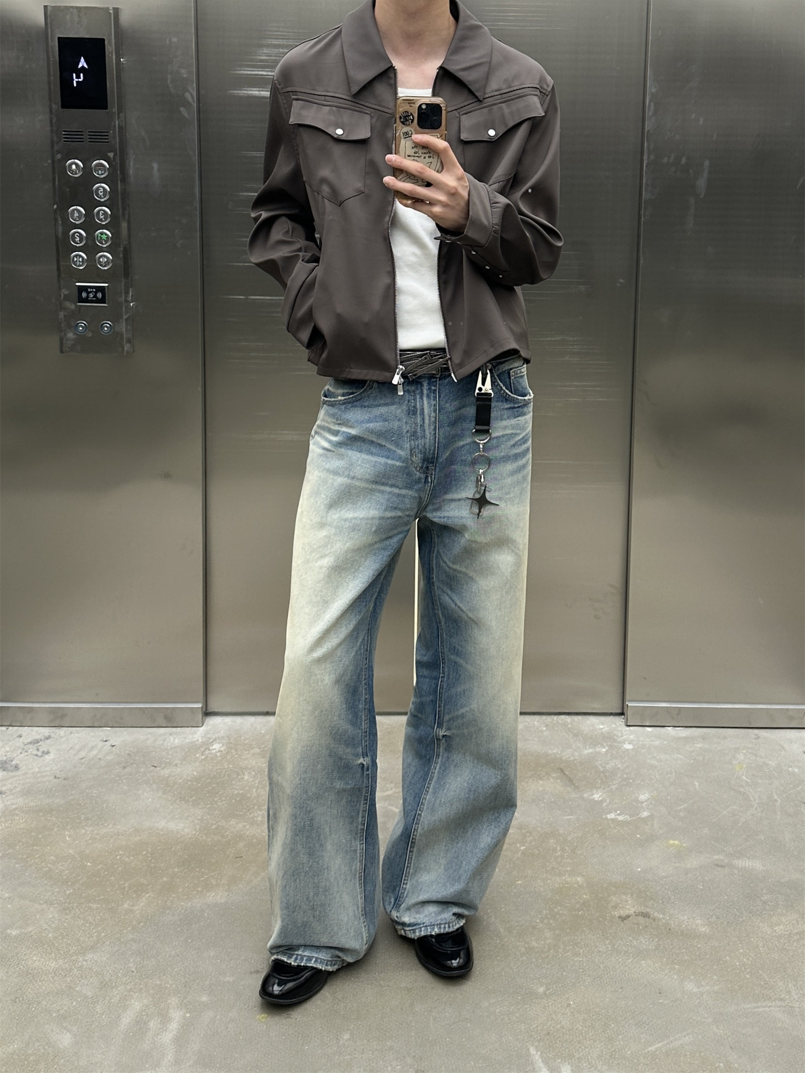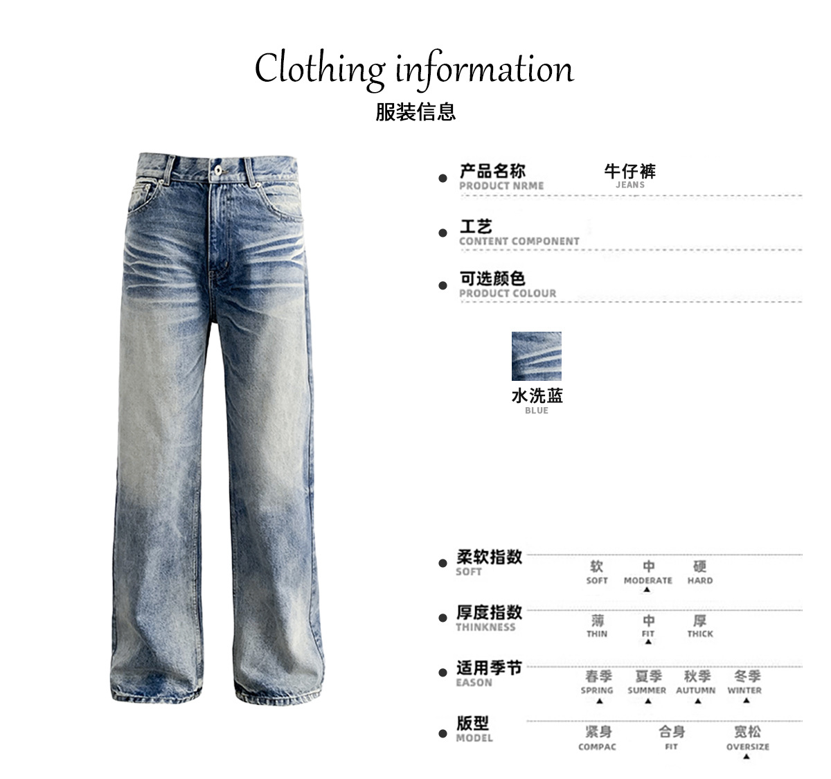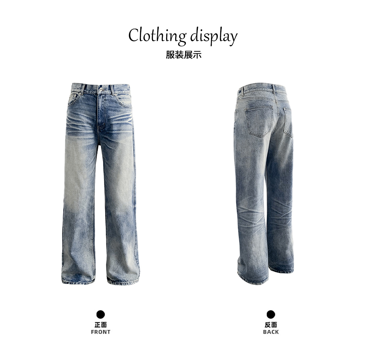JTFS TBR Niuwang 시리즈 05 A 형 물 세척 블루 스트레이트 느슨한 청결한 청바지 남성용 바지스토어 가기