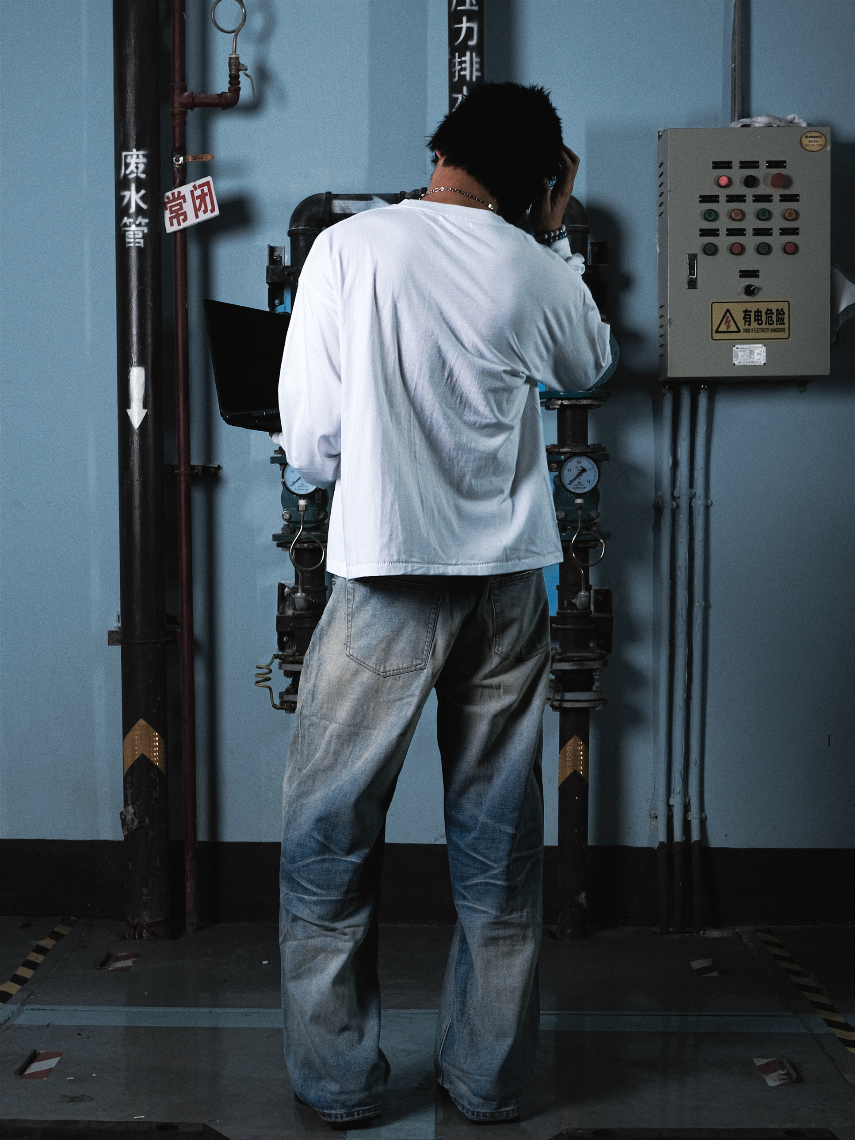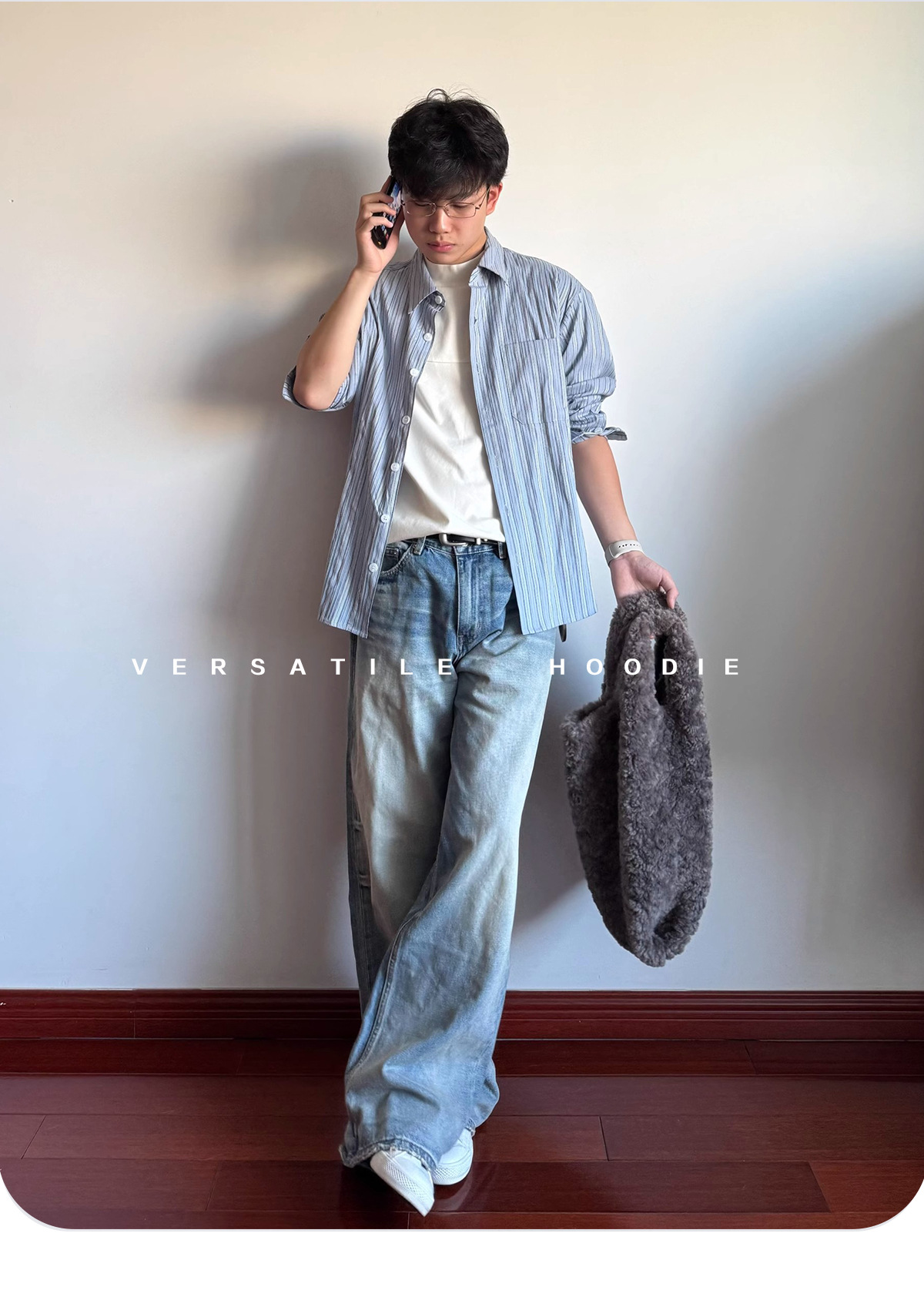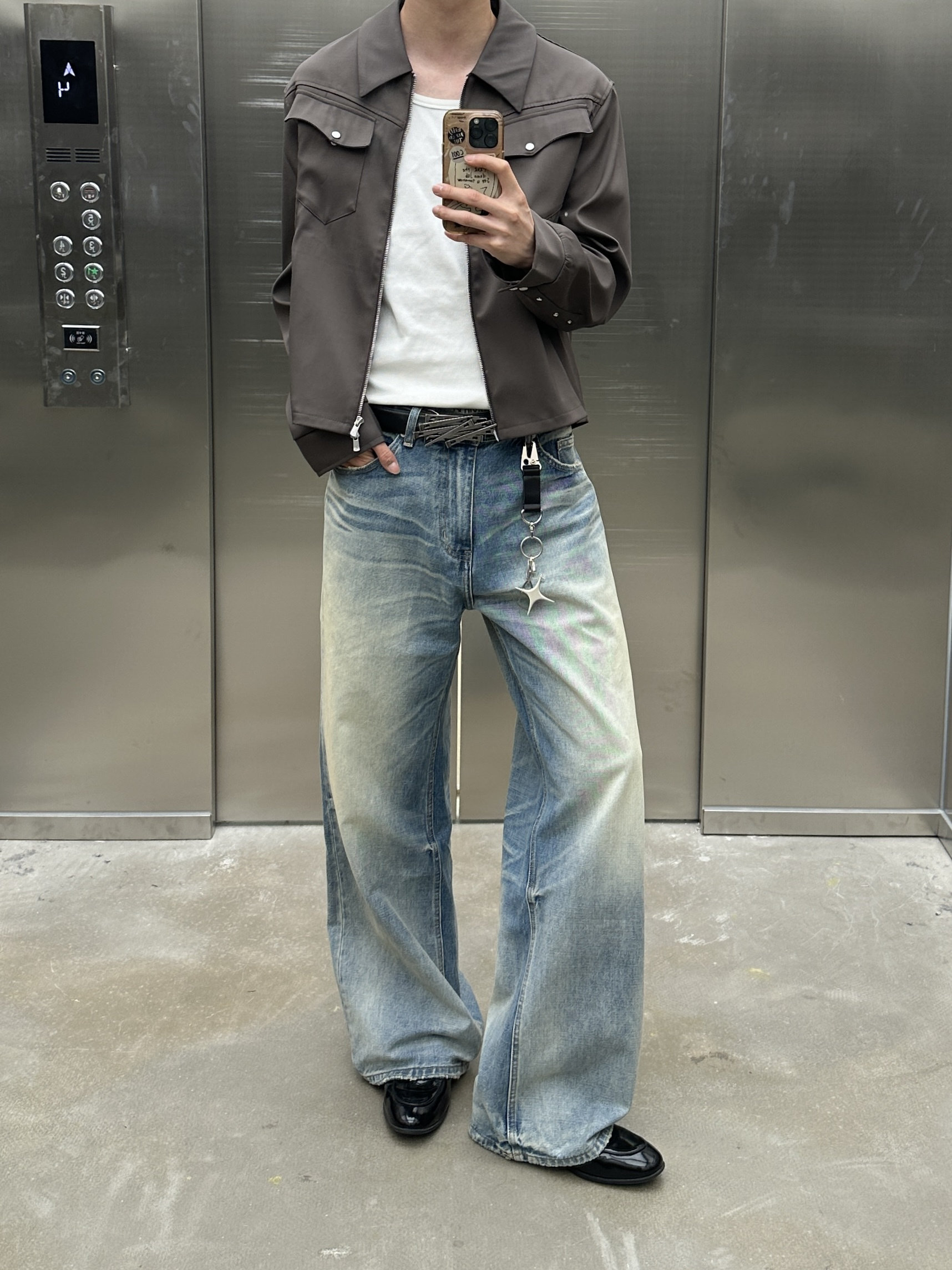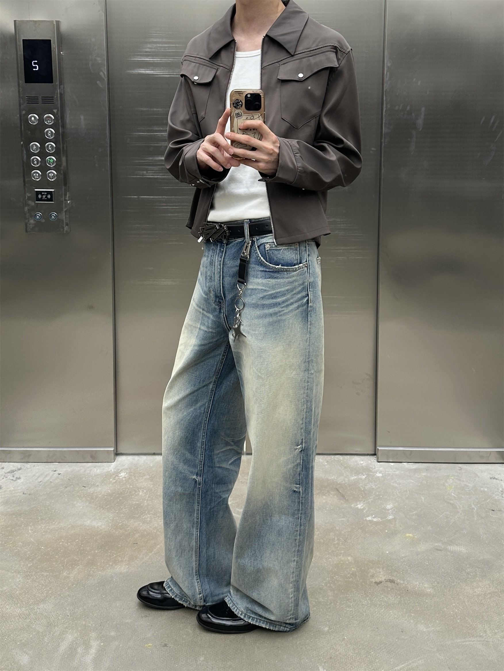 JTFS TBR Niuwang 시리즈 05 A 형 물 세척 블루 스트레이트 느슨한 청결한 청바지 남성용 바지스토어 가기