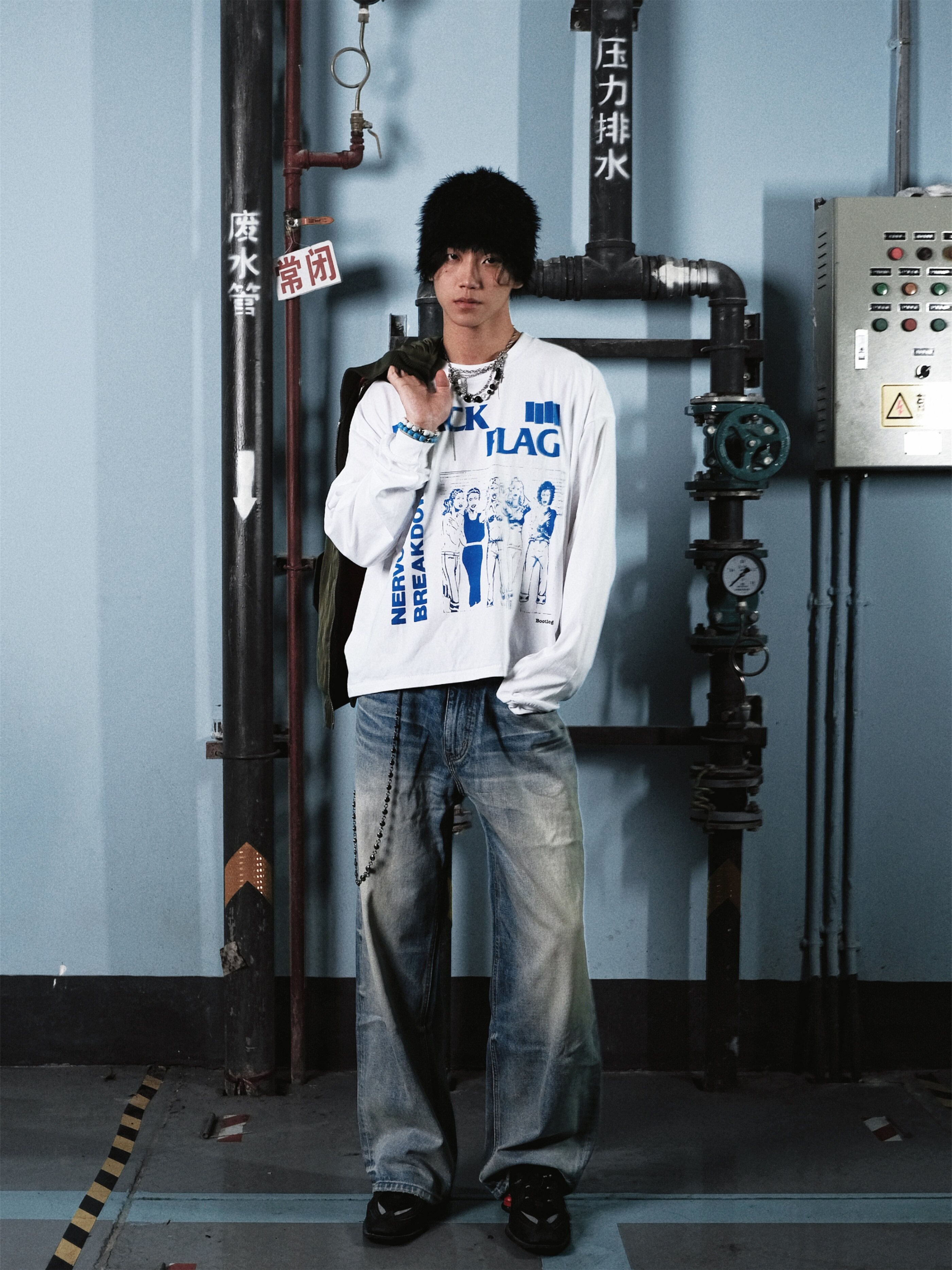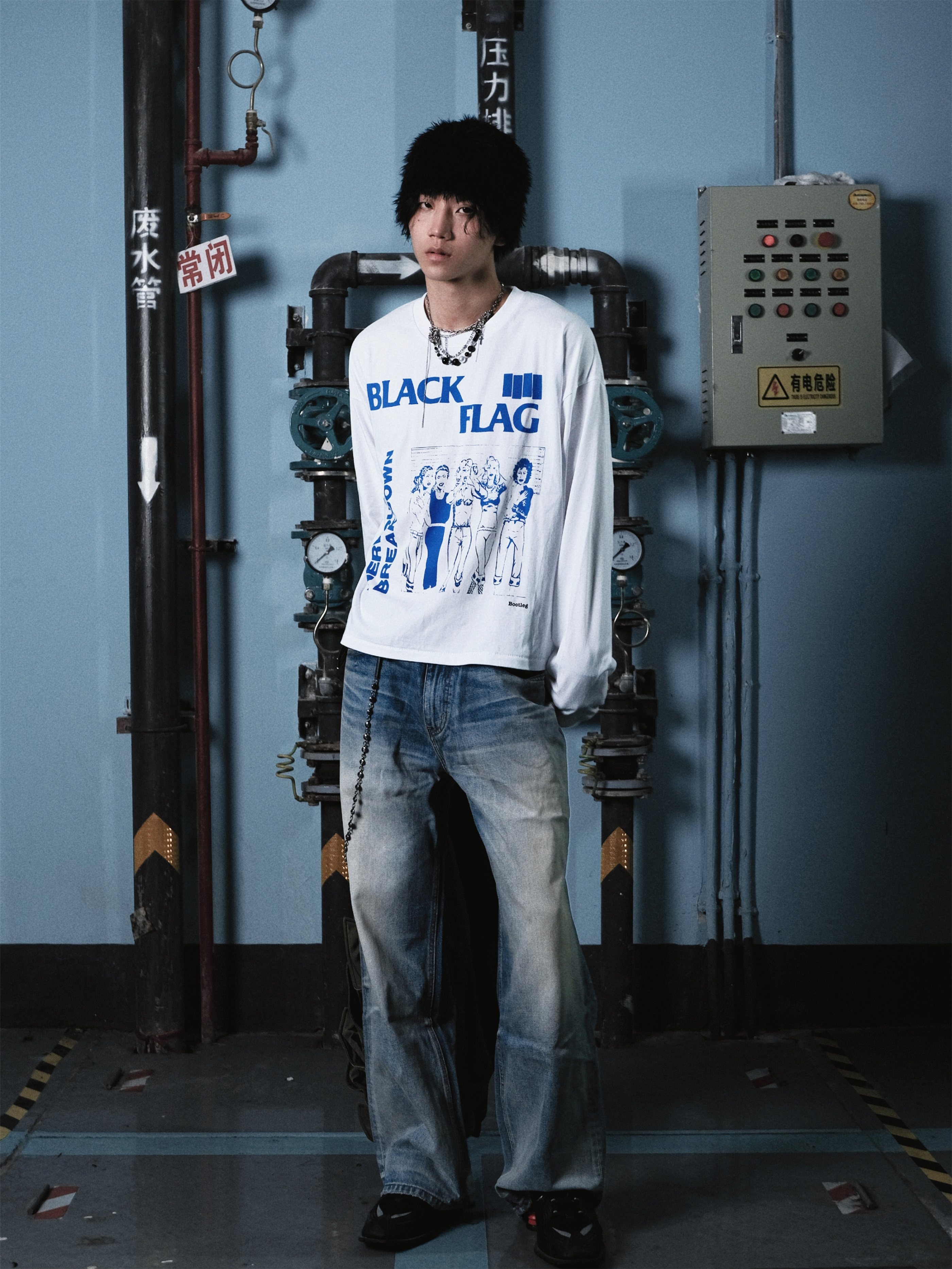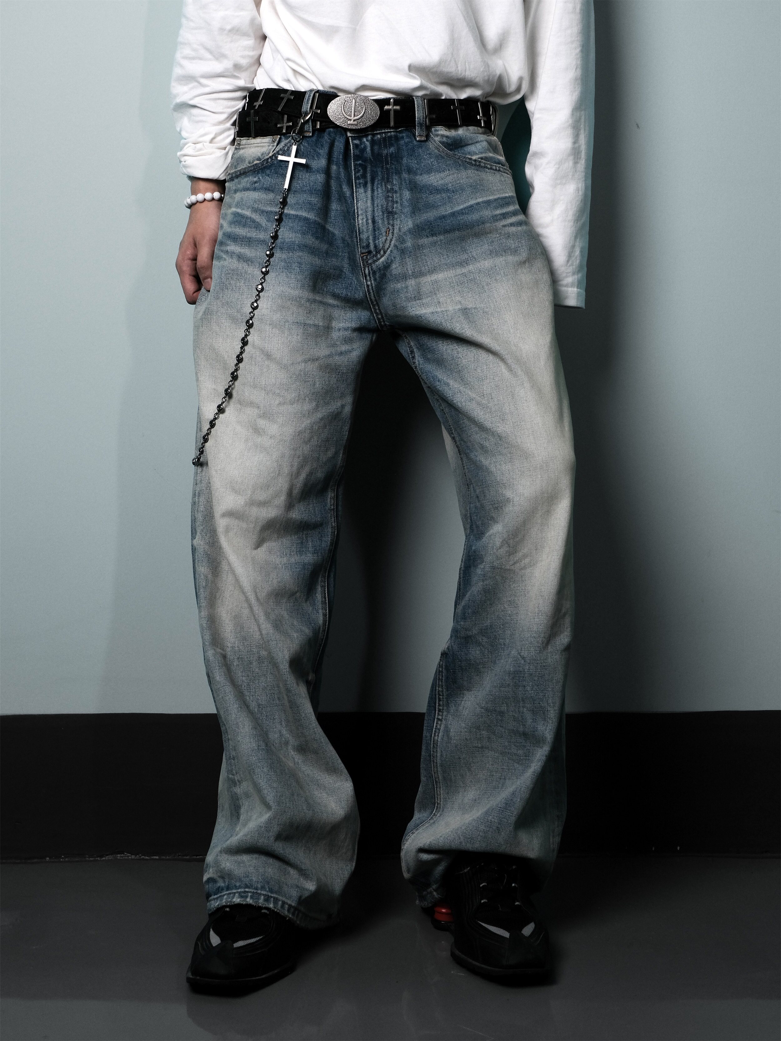 JTFS TBR Niuwang 시리즈 05 A 형 물 세척 블루 스트레이트 느슨한 청결한 청바지 남성용 바지