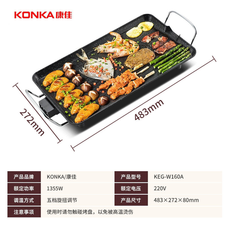 Konka 전기 바베큐 팬 가정용 무연 전기 오븐 전기 그릴 팬 바베큐 팬 바베큐 오븐 다기능 철판 그릴 팬