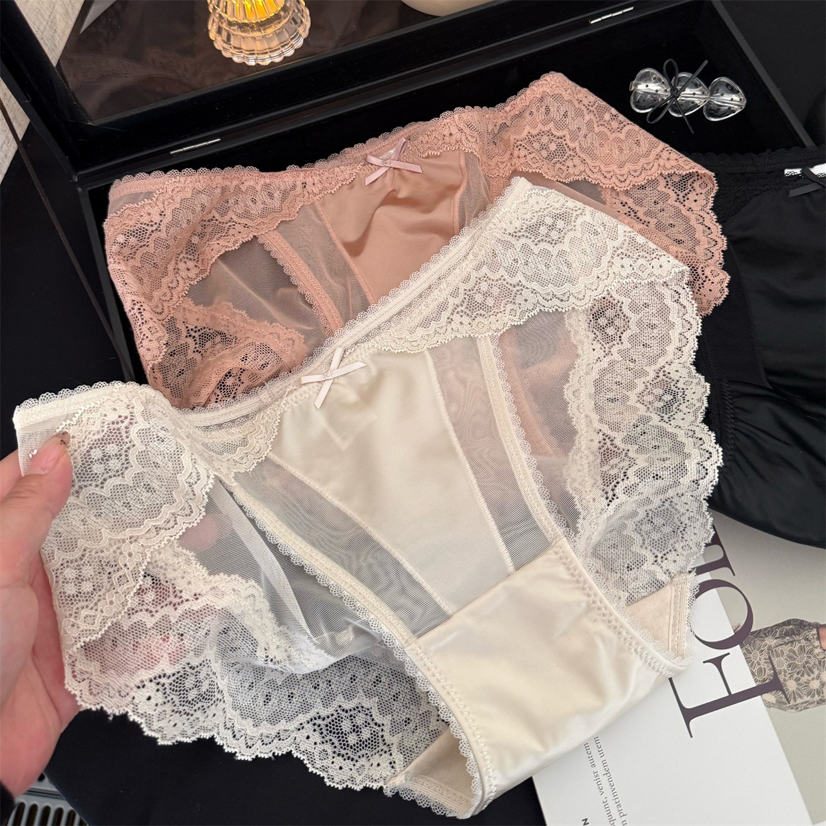 섹시한 레이스 속옷 여성의 낮은 허리 편안한 통기성 크로트 브리프 새틴 속옷 여성용 브리프
