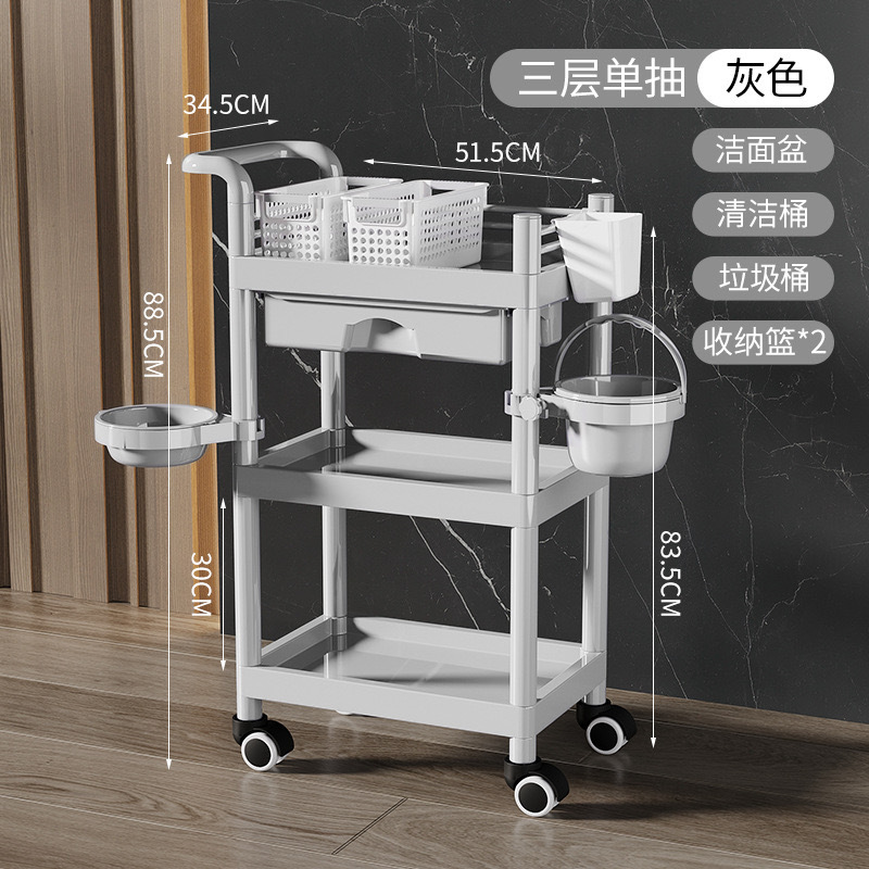 미용실 트롤리 플라스틱 미용실 트롤리 이발소 모바일 스토리지 스토리지 랙 3층 빈 병 스토리지스토어 가기