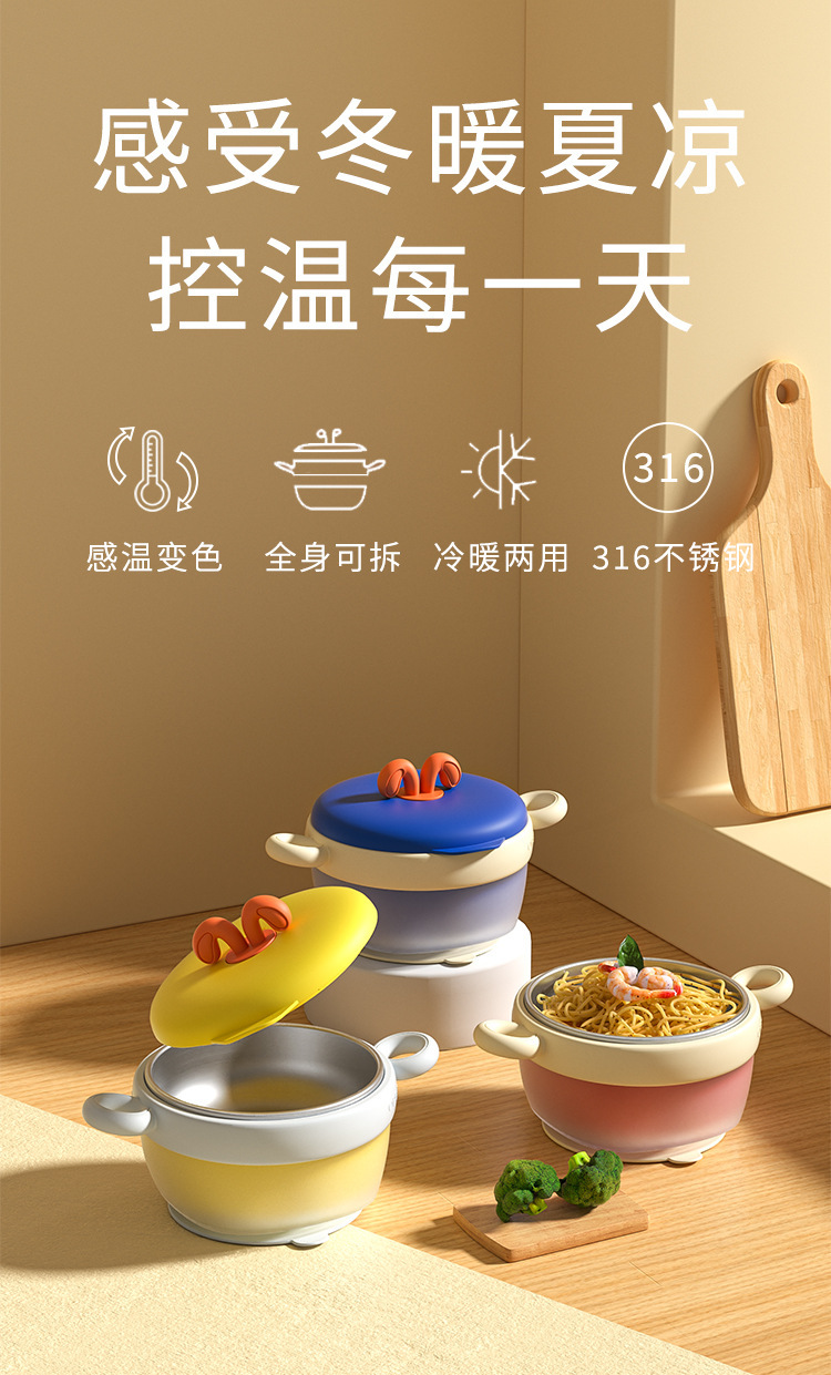 유아용 식품보충그릇, 유아용 물주입식 보온그릇, 어린이 낙하방지 및 화상방지 스테인리스 식사용 흡입컵 식기스토어 가기