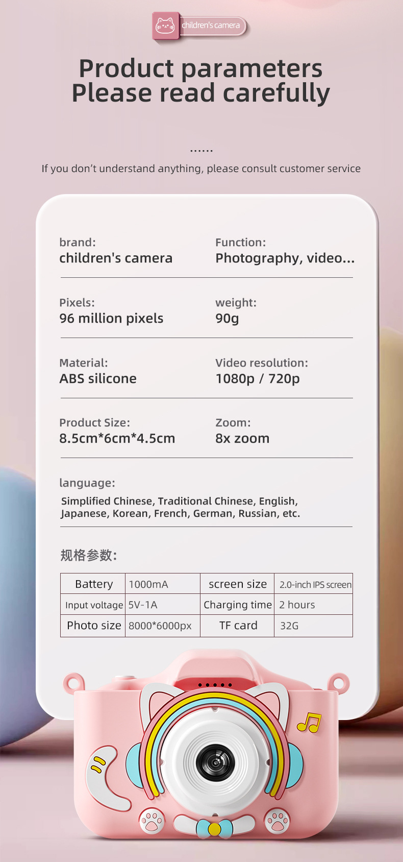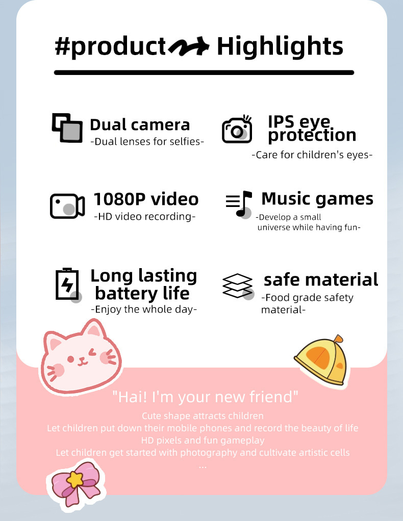 • 귀여운 고양이-핑크-HD 듀얼 카메라(메모리 카드 없음)