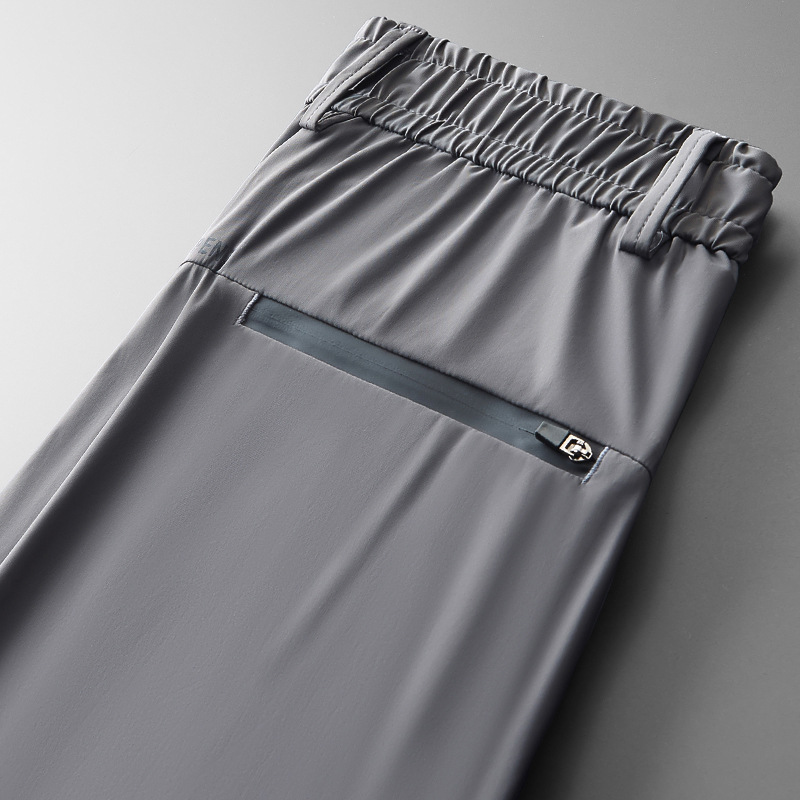 아이스 실크 캐주얼 비즈니스 바지 남자 여름 얇은 빠른 건조 시원한 느낌 바지 남자 패션 통기성 느슨한 다리 바지