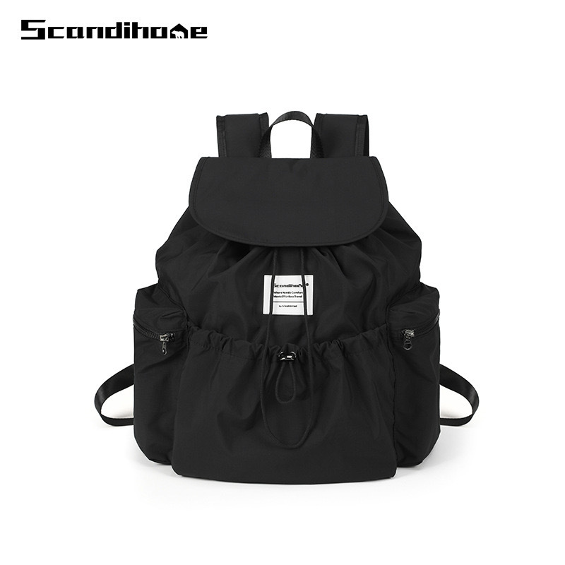 일본과 한국 스타일 Ins 캐주얼 백팩 대용량 배낭 통근 Drawstring 플립 백 경량 여행 배낭