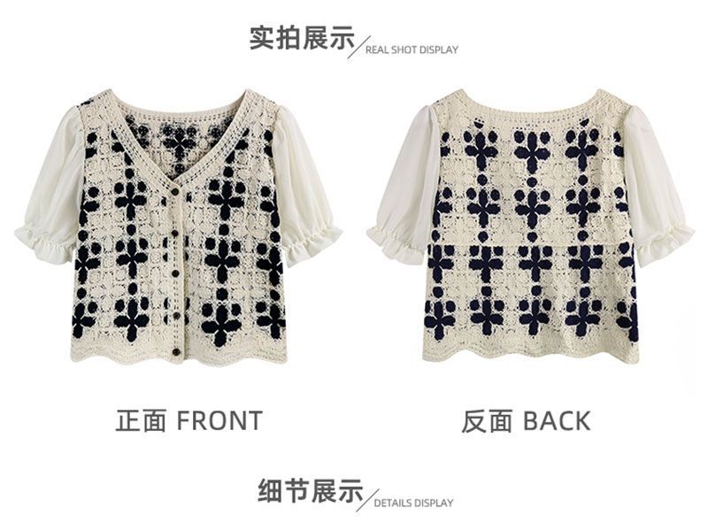 쉬폰 버블 슬리브 수놓은 짧은 소매 최고 대학 스타일 웨스턴 스타일 빈티지 Ins 하이 스트리트 슬림 룩 여름 작은 셔츠 틈새