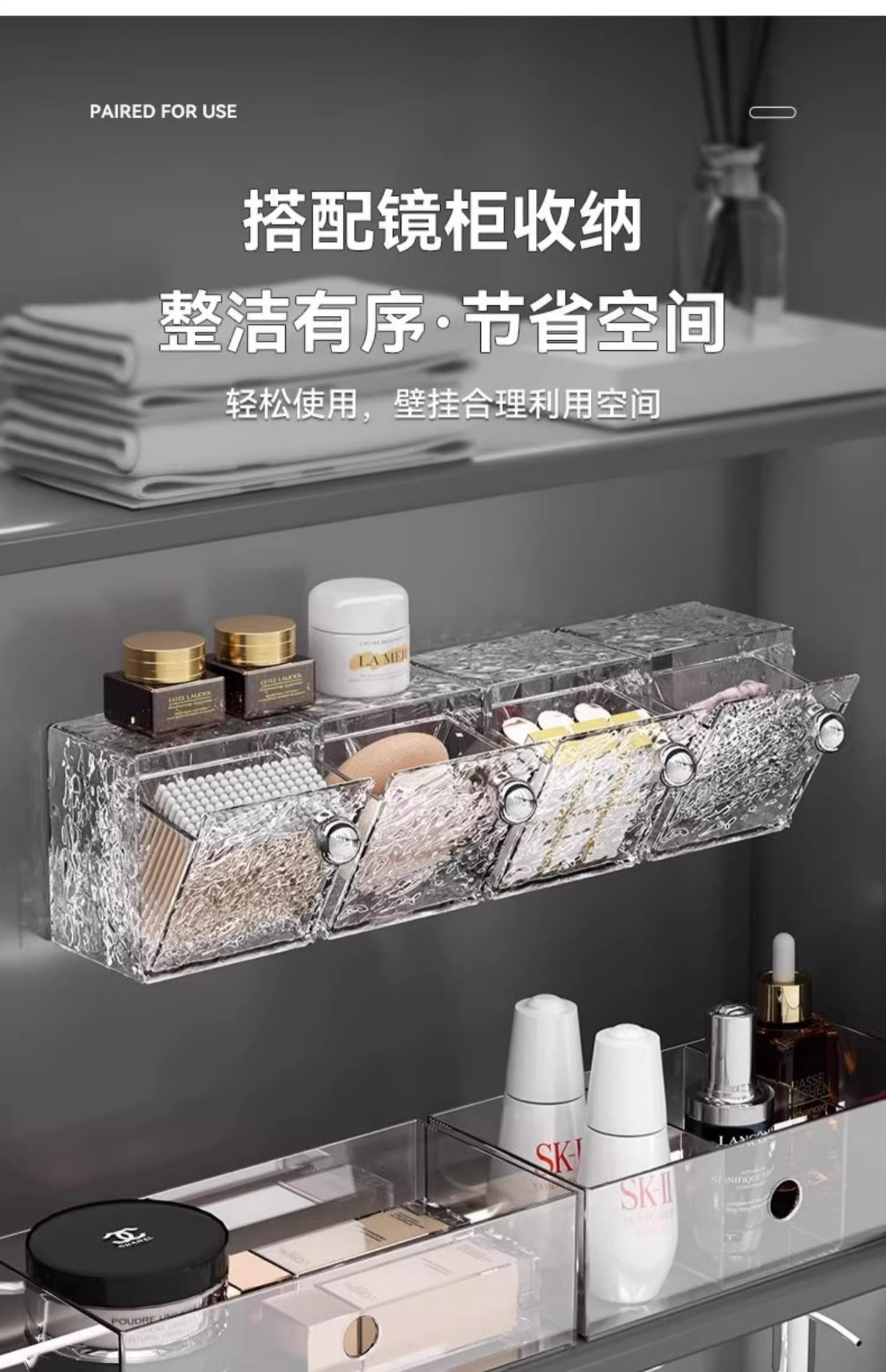 가벼운 고급 물결무늬 고급 화장솜 수납함, 욕실 벽걸이형 립스틱 면봉, 메이크업 리무버 면 수납함