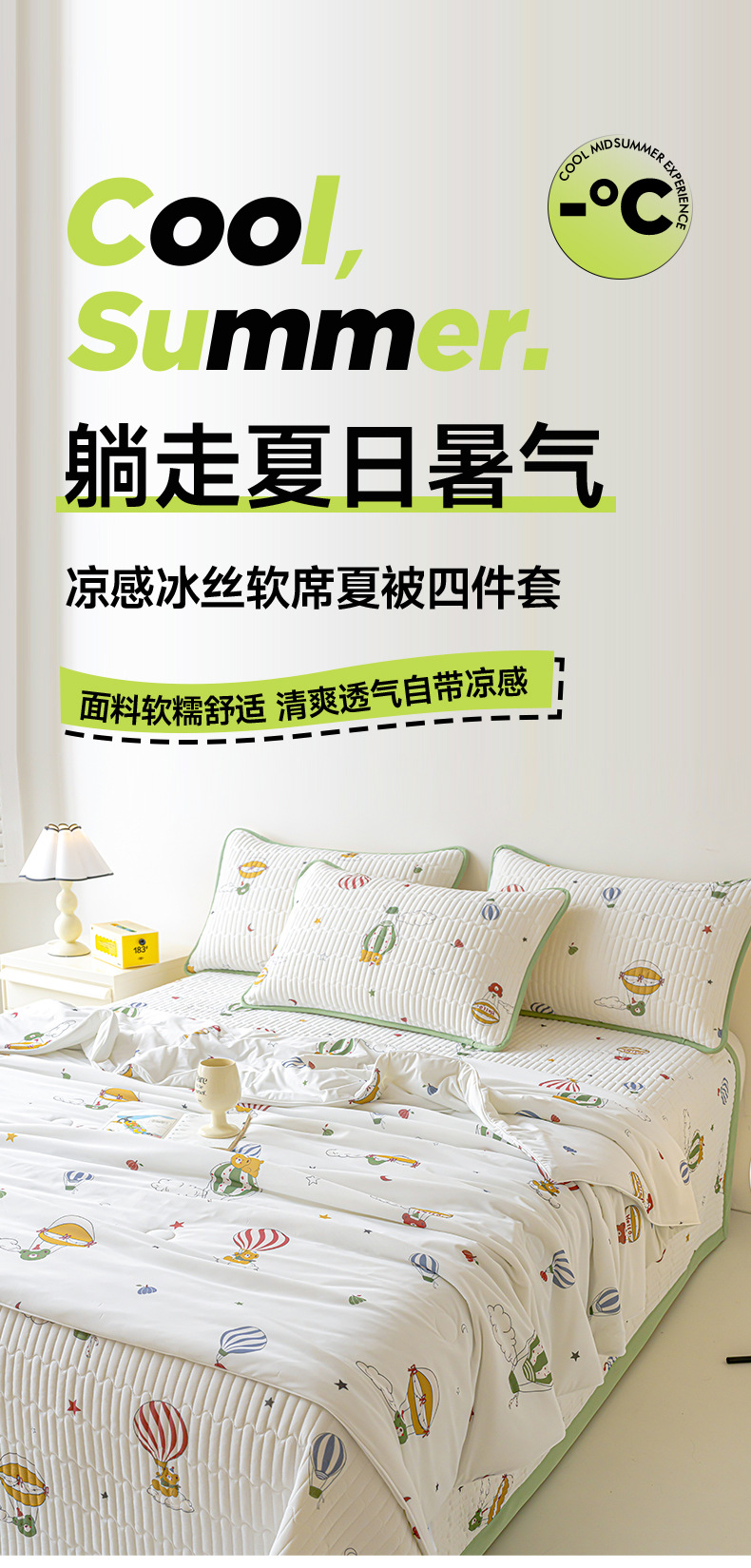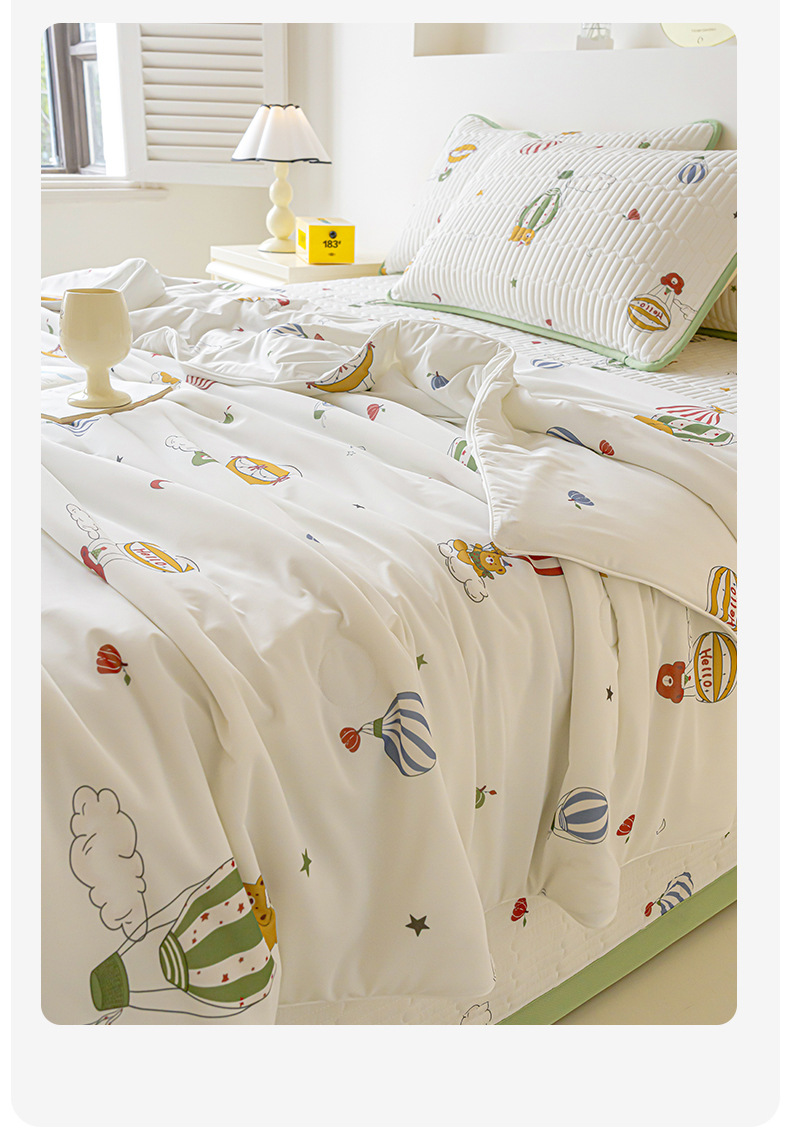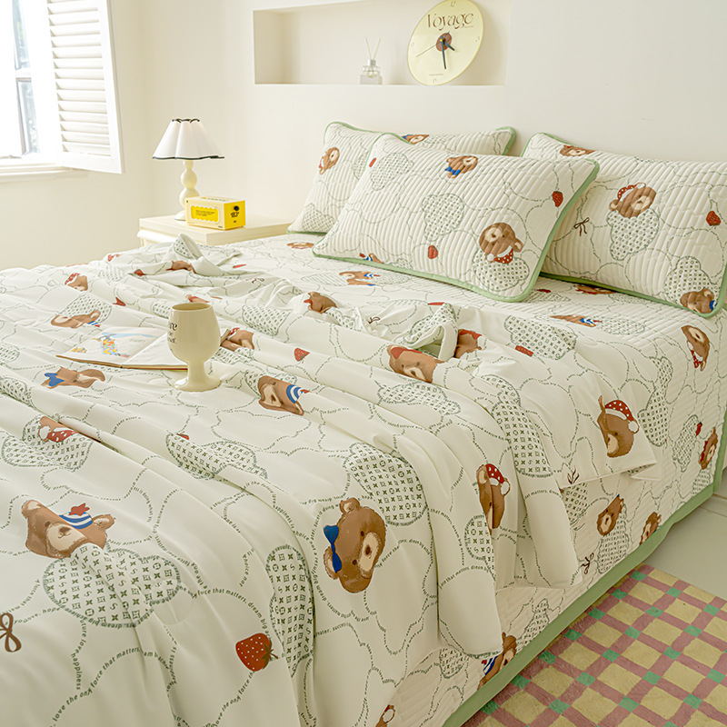 클래스 A 엄마와 유아 급의 쿨 아이스 실크 여름 퀼트 4 피스 세트 만화 어린이 여름 이불 기계 세탁기 에어컨 이불스토어 가기