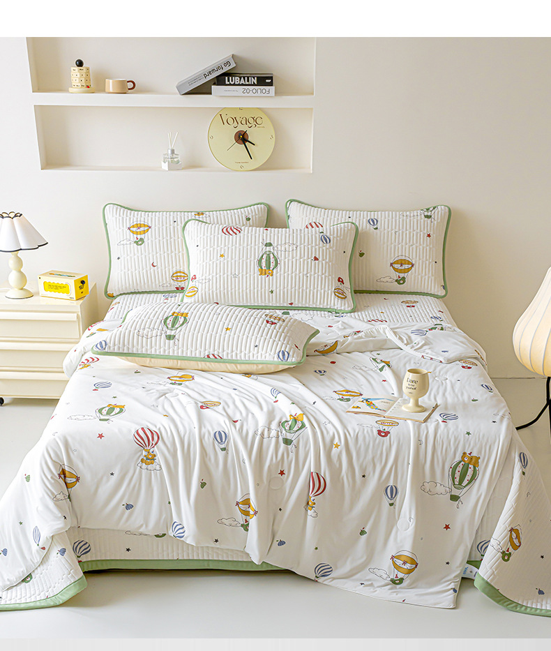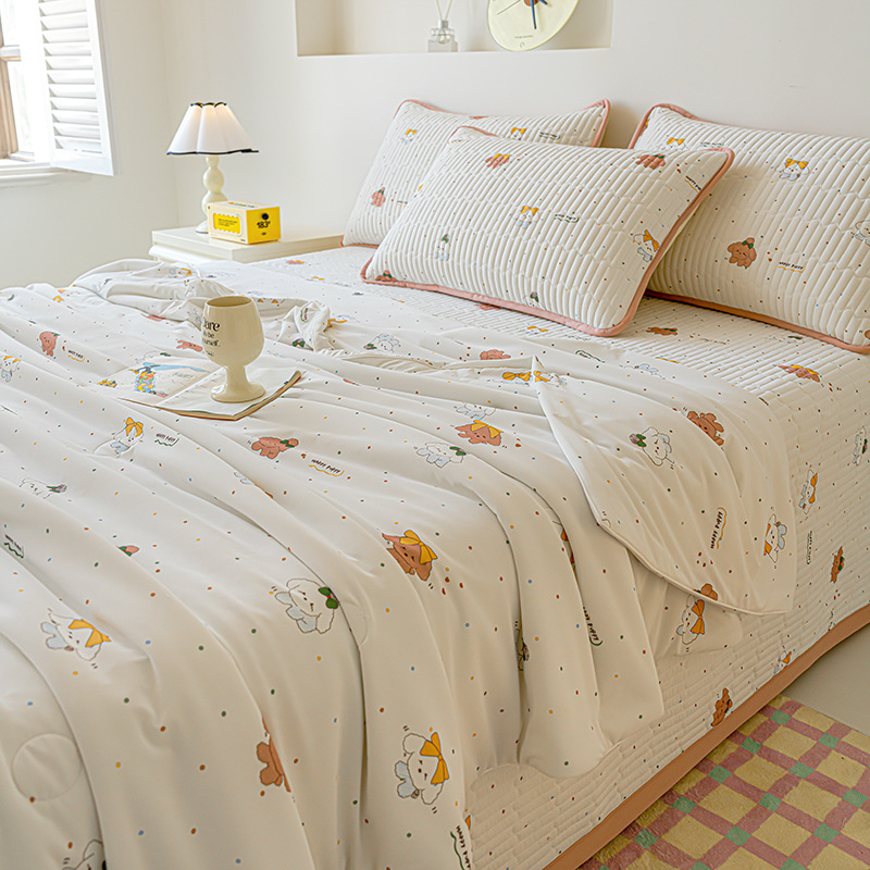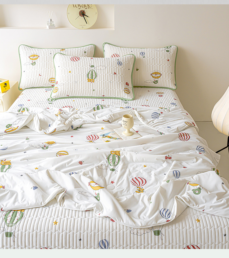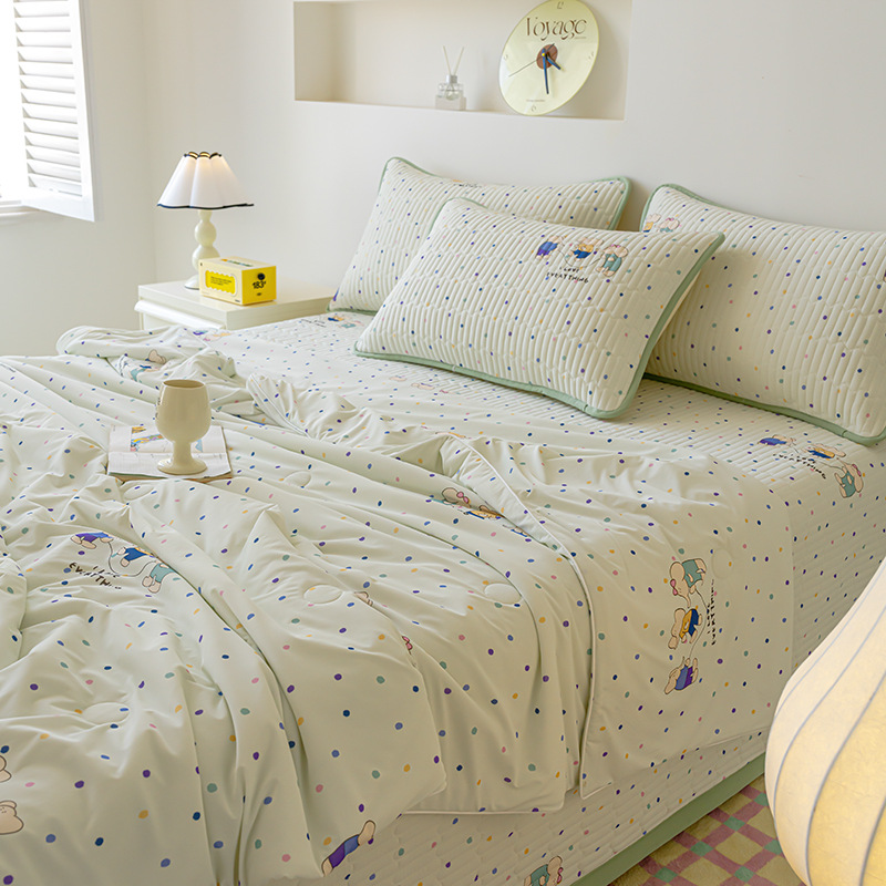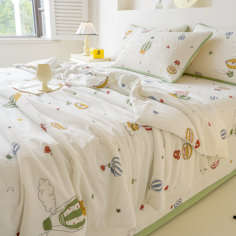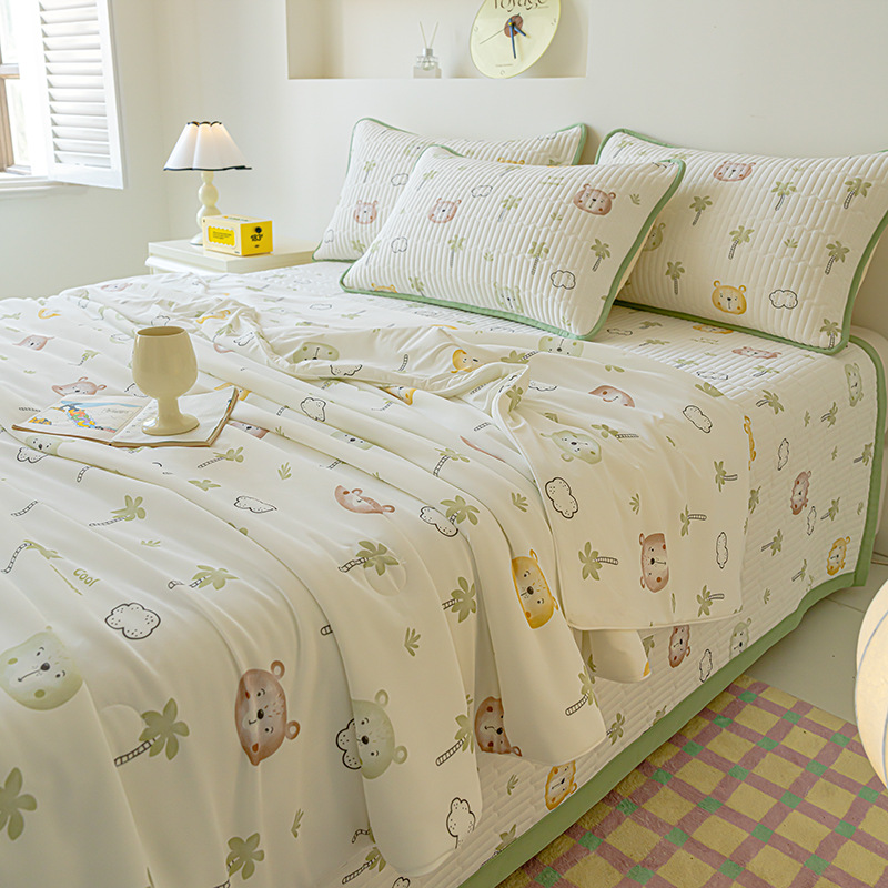 클래스 A 엄마와 유아 급의 쿨 아이스 실크 여름 퀼트 4 피스 세트 만화 어린이 여름 이불 기계 세탁기 에어컨 이불