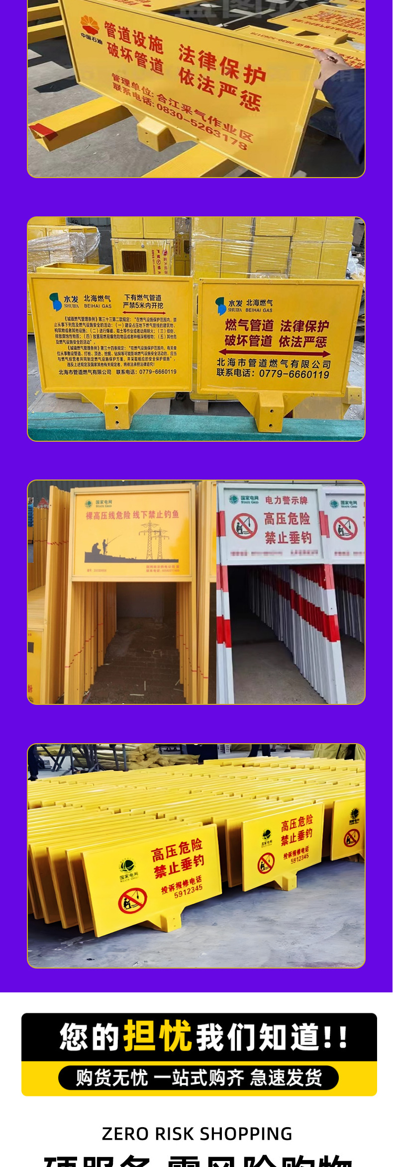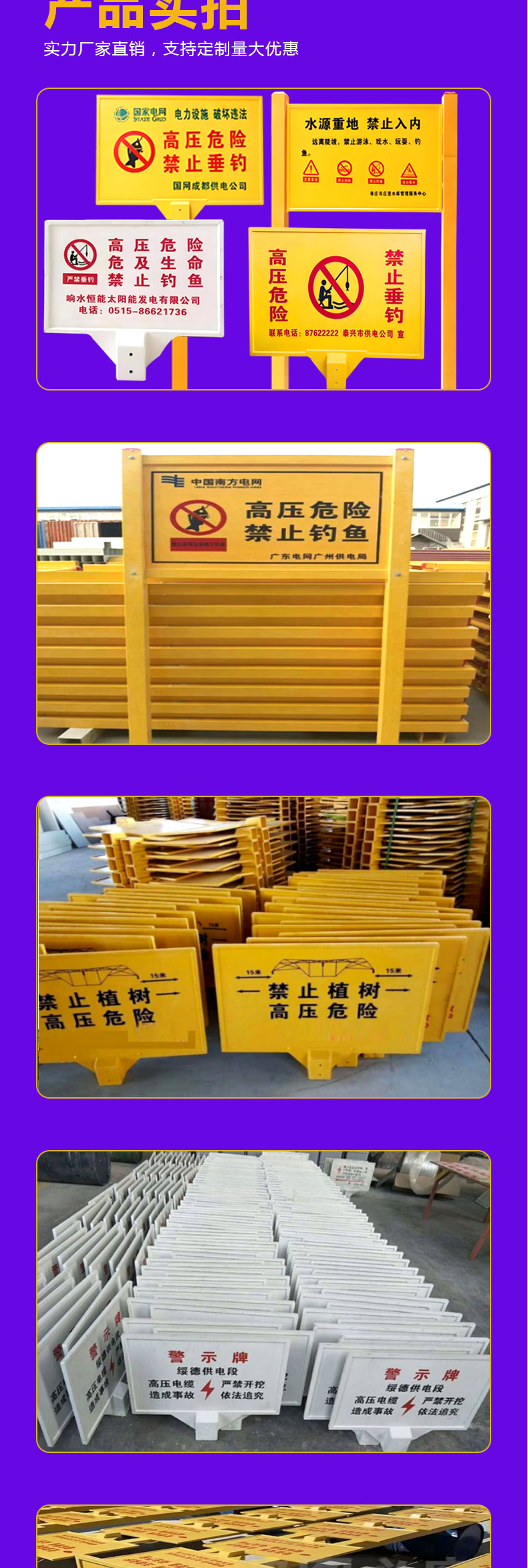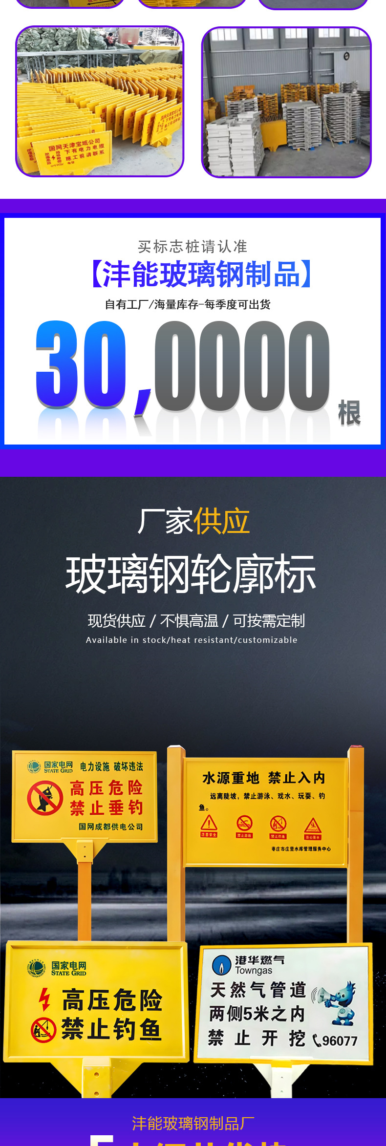 유리섬유 경고 표지판, 케이블 표지판, 단일 및 이중 기둥 표지판, 지하 보호 반사 표지판스토어 가기