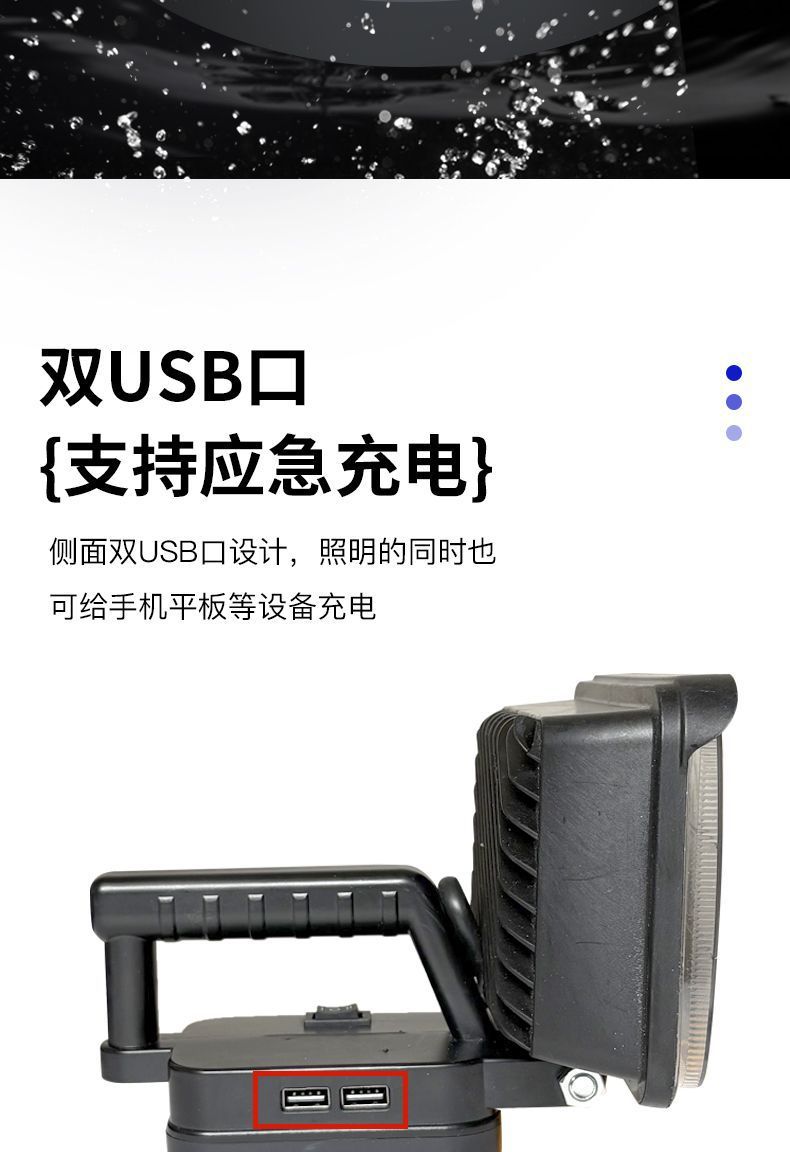 • 손잡이가 있는 모델 5inch 정사각형 조명 [하이빔 및 로우빔 포함] 배터리 없음 - Dayi 배터리 카드 슬롯용 [듀얼 USB 고속 충전 포함]