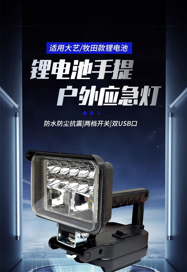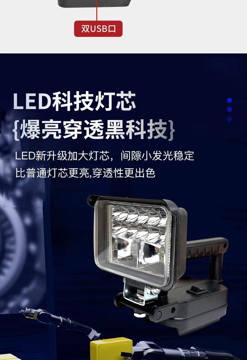 • 배터리가 없는 새로운 핸들 모델[3inch 사각 조명 하이빔] - Makita 배터리 카드 슬롯용 [듀얼 USB 고속 충전 포함]