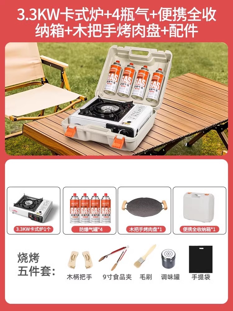 • ♧그❦ㅋㅋㅋ❧♧업그레이드된 카세트 스토브 + 가스 4병 + 휴대용 전체 보관함 + 나무 손잡이 바베큐 플레이트 + 액세서리♧그❦ㅋㅋㅋ❧♧