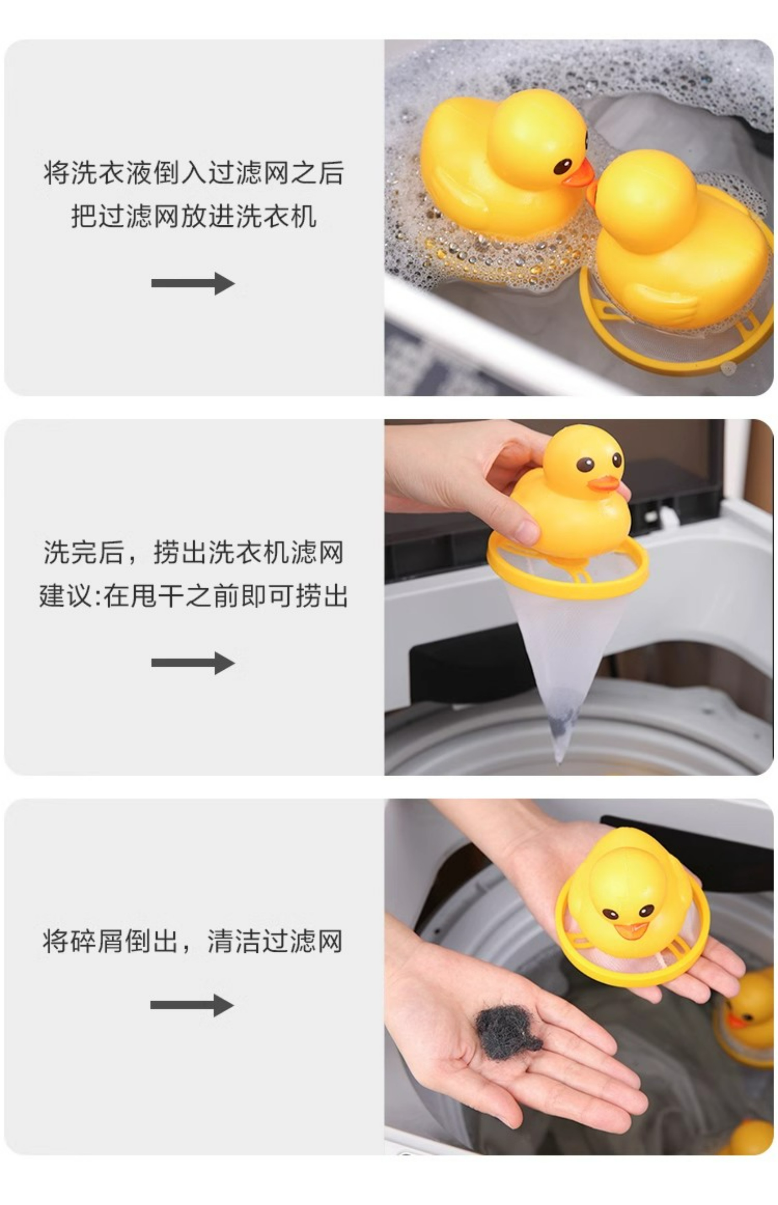 노란 오리 새로운 세탁기 필터 가방 반대로 감기 필터 스티커 머리 제거 제제 세탁 공스토어 가기