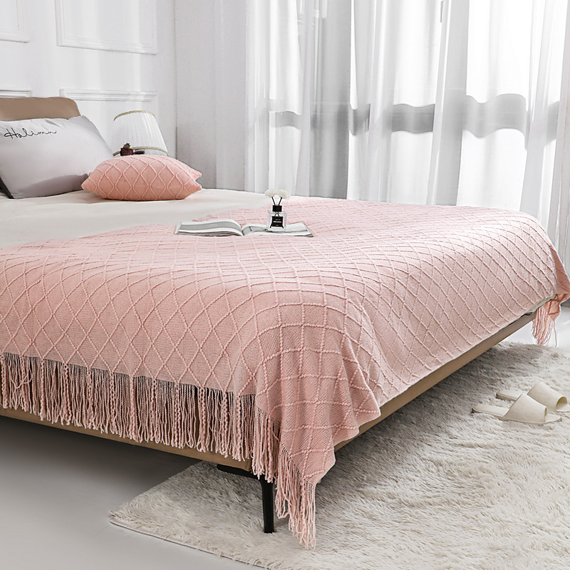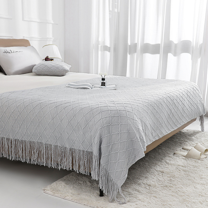 북유럽 복고풍 다이아몬드 모직 담요 단색 니트 담요 침대 옆 담요 침대 소파 담요와 수건 침대 옆 수건