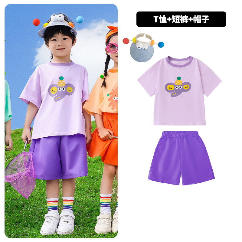 • 정장 [750D 보라색 코끼리 반팔 + 274D 퓨어 퍼플 반바지] + 파란 눈 모자