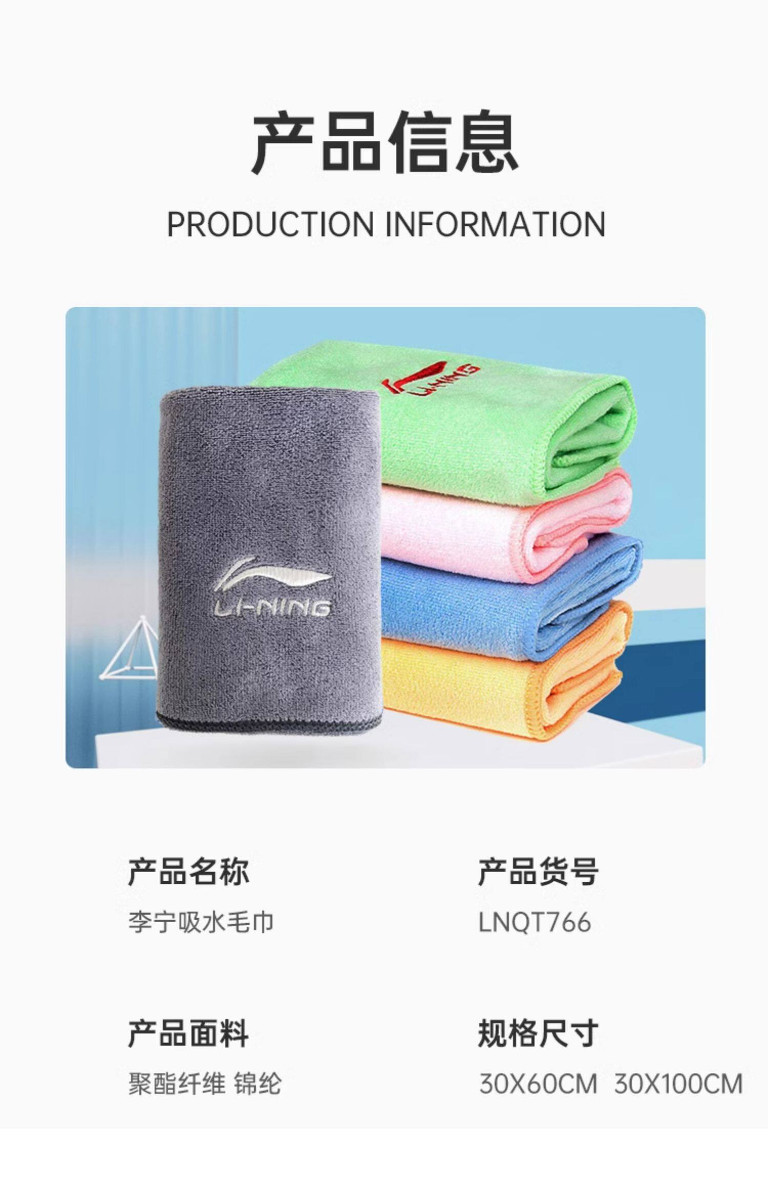 Li Ning 스포츠 타월 땀 흡수 타월 속건성 남성 성인 피트니스 수영 타월 배드민턴 면 타월 흡수성 타월스토어 가기