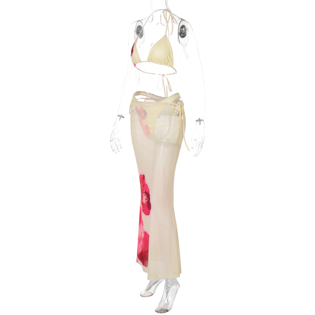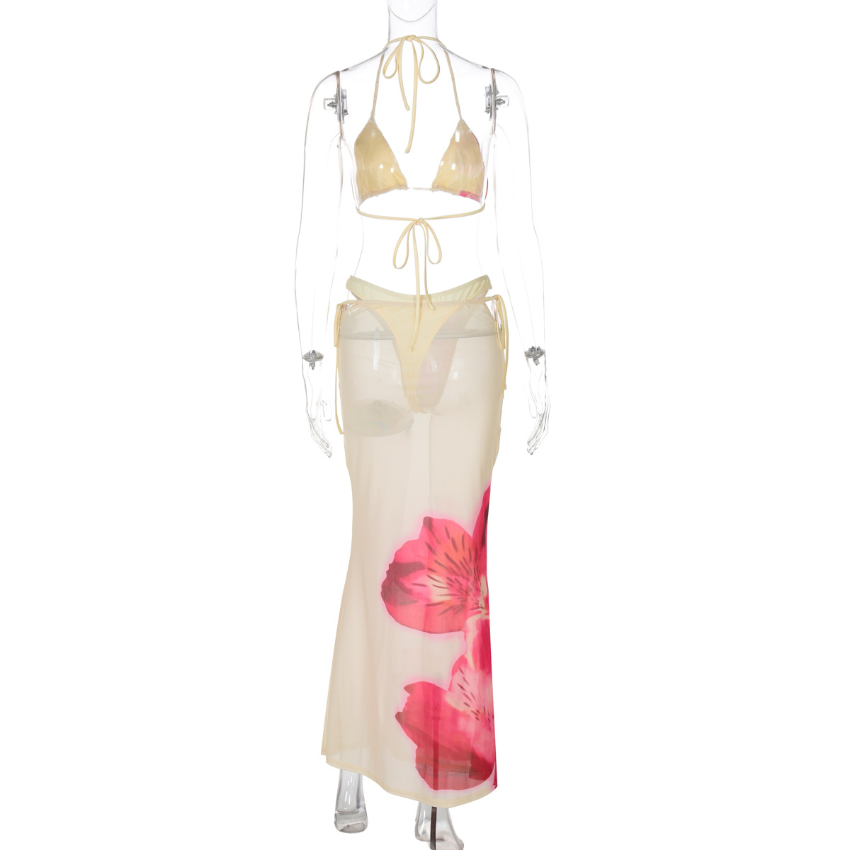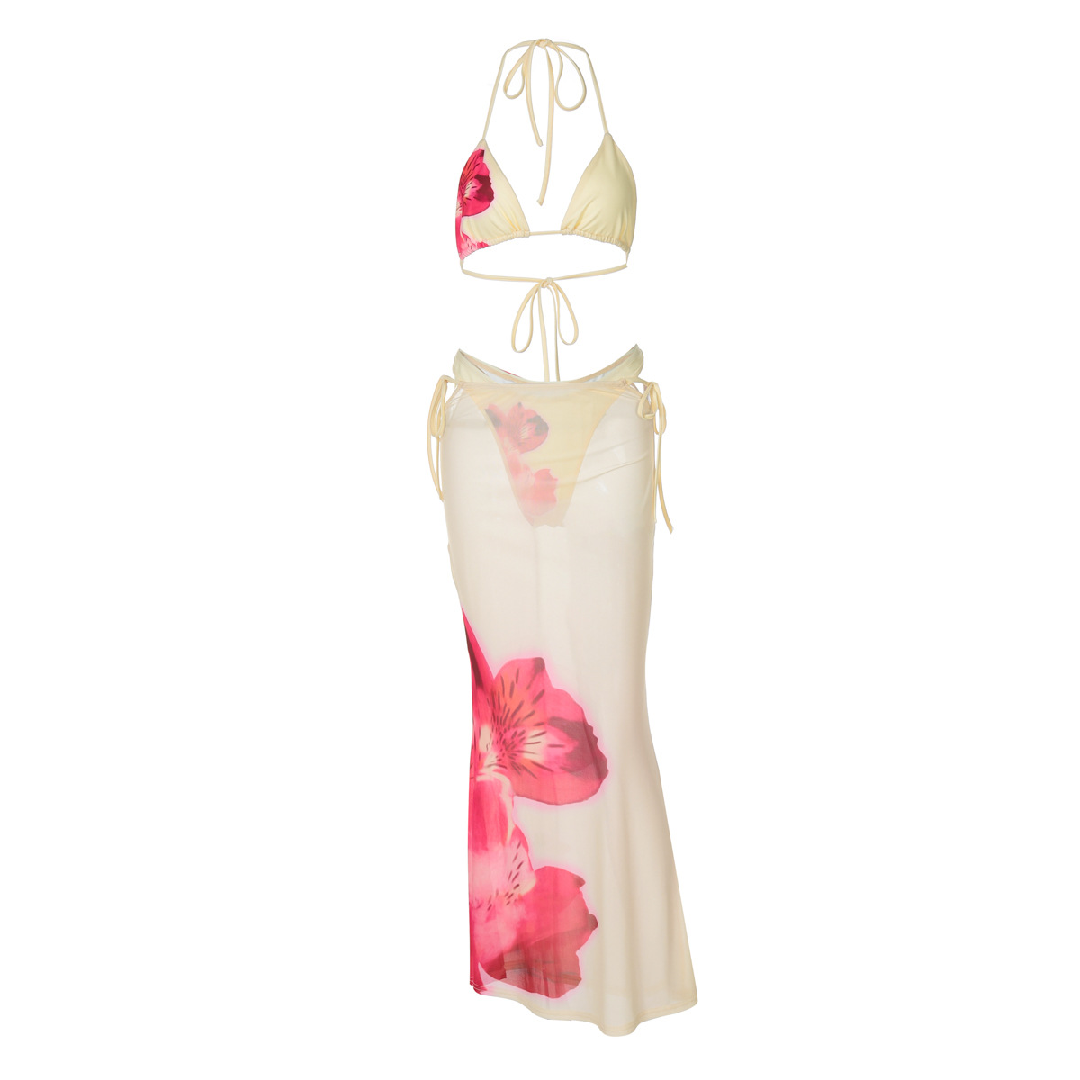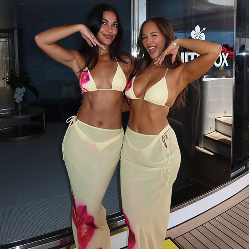 유럽과 미국 여성의 2025 여름 새로운 비키니 레이스 업 수영복 비키니 3 피스 인쇄 섹시한 세트 여성
