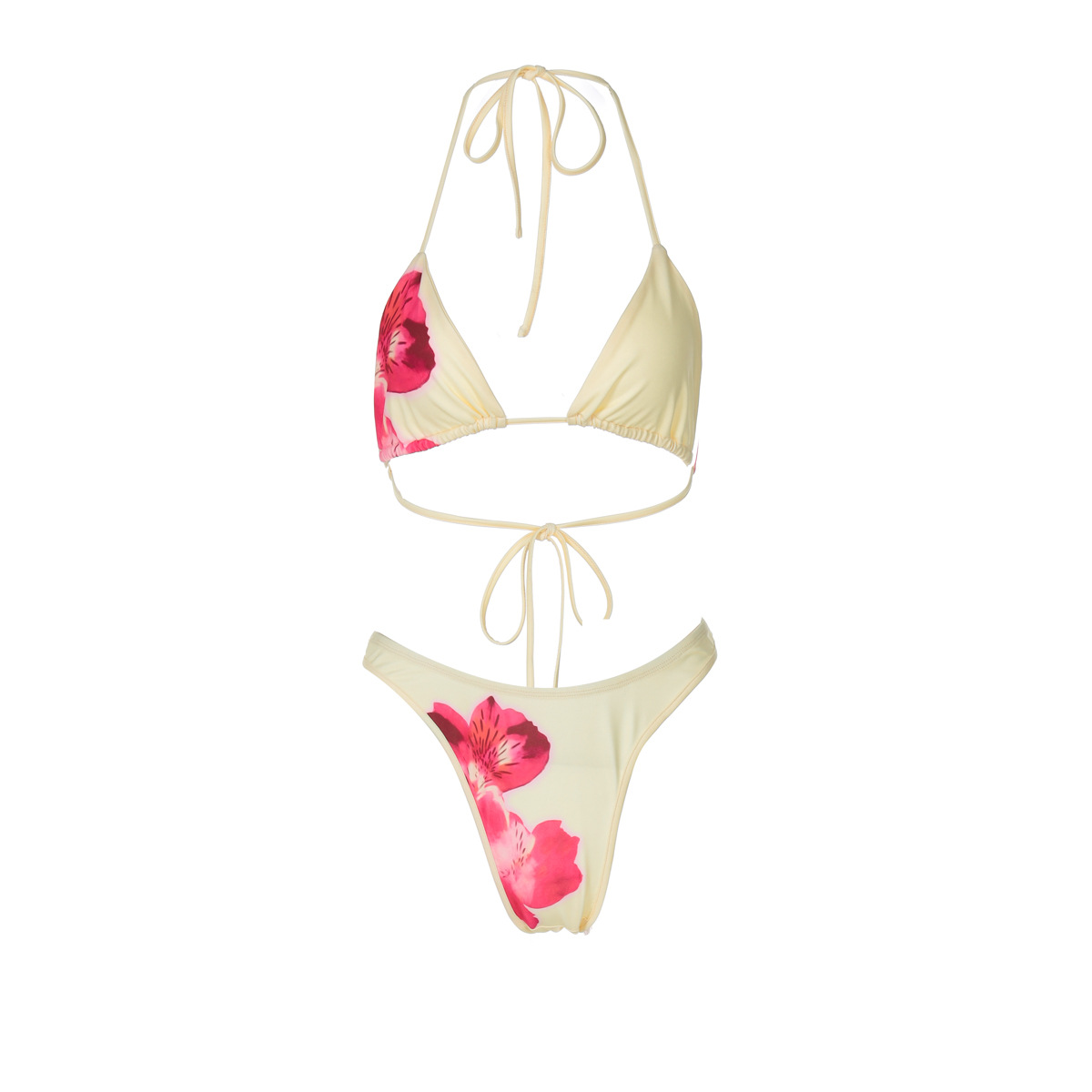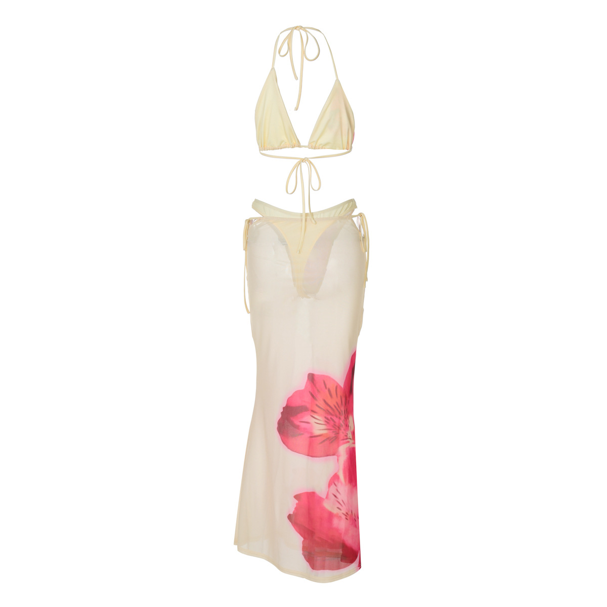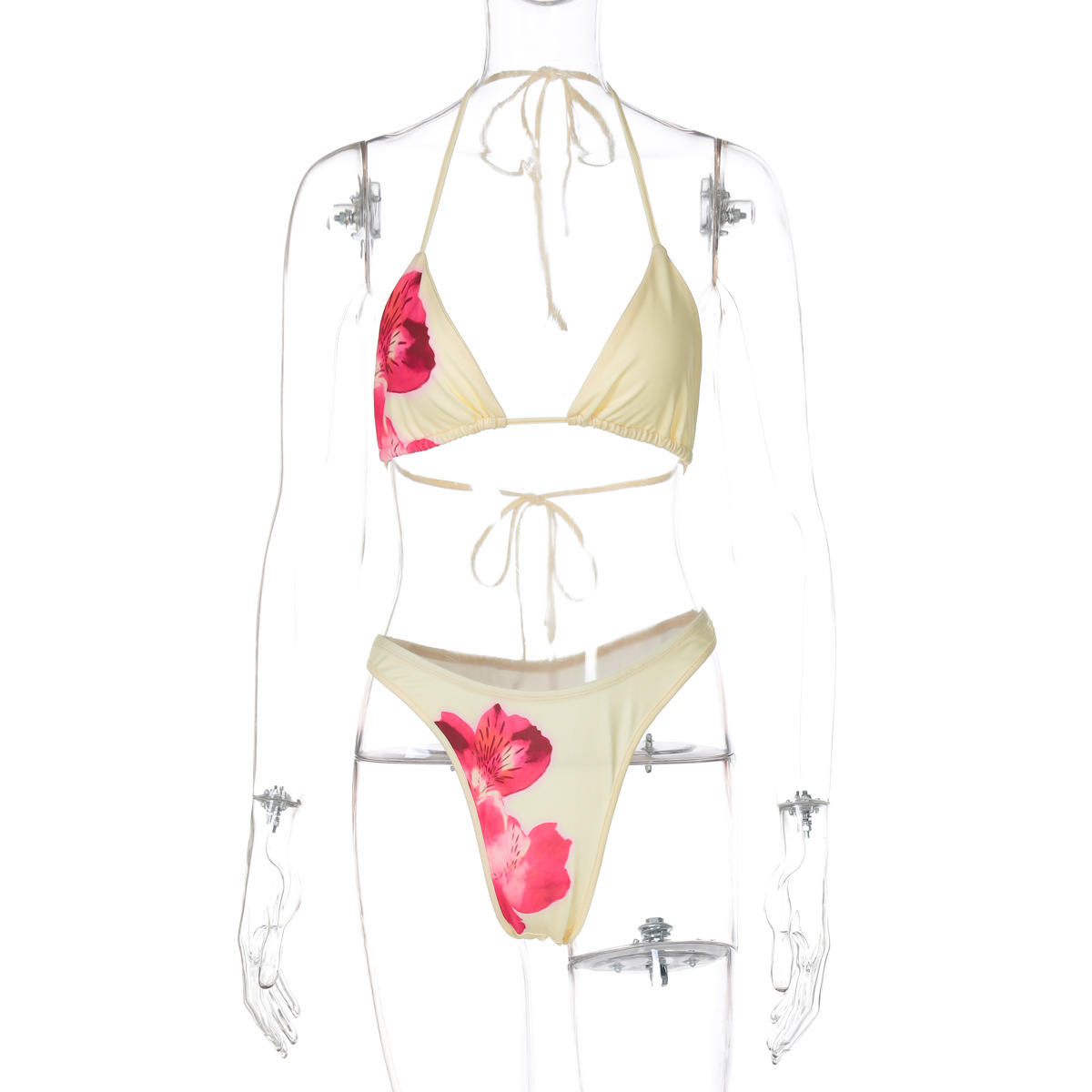 유럽과 미국 여성의 2025 여름 새로운 비키니 레이스 업 수영복 비키니 3 피스 인쇄 섹시한 세트 여성