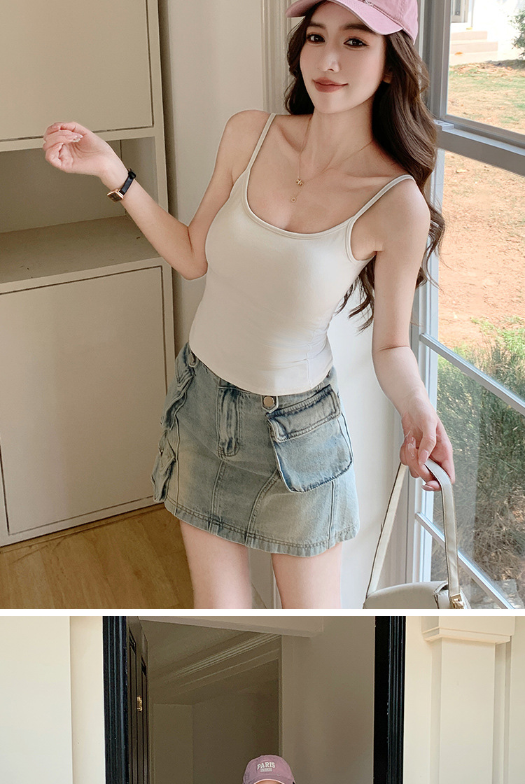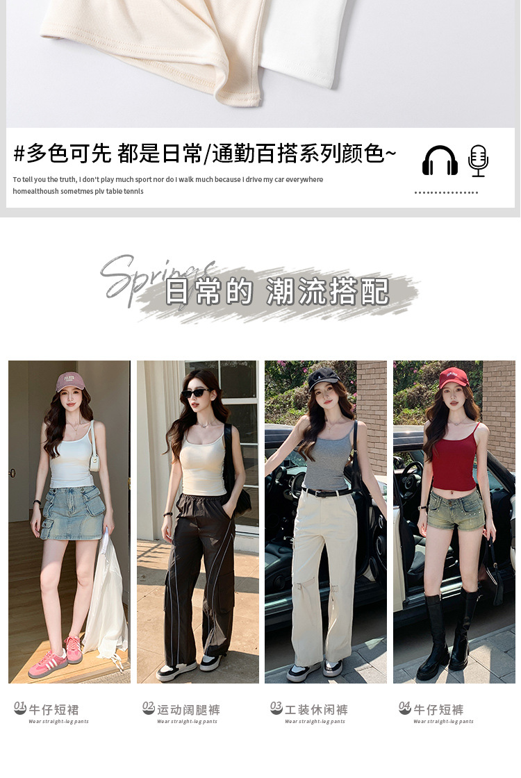 H587 작은 슬링 슬리밍 핫 걸 탑 여성용 가슴 패드 내부 조끼 여름 섹시 티셔츠 다용도스토어 가기