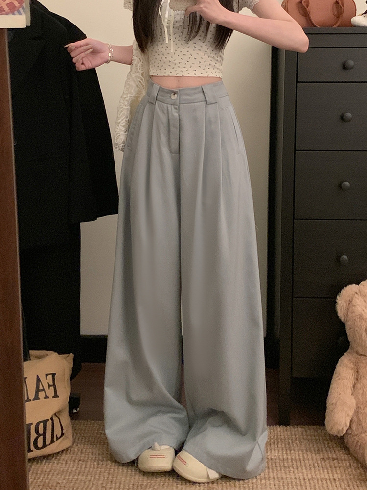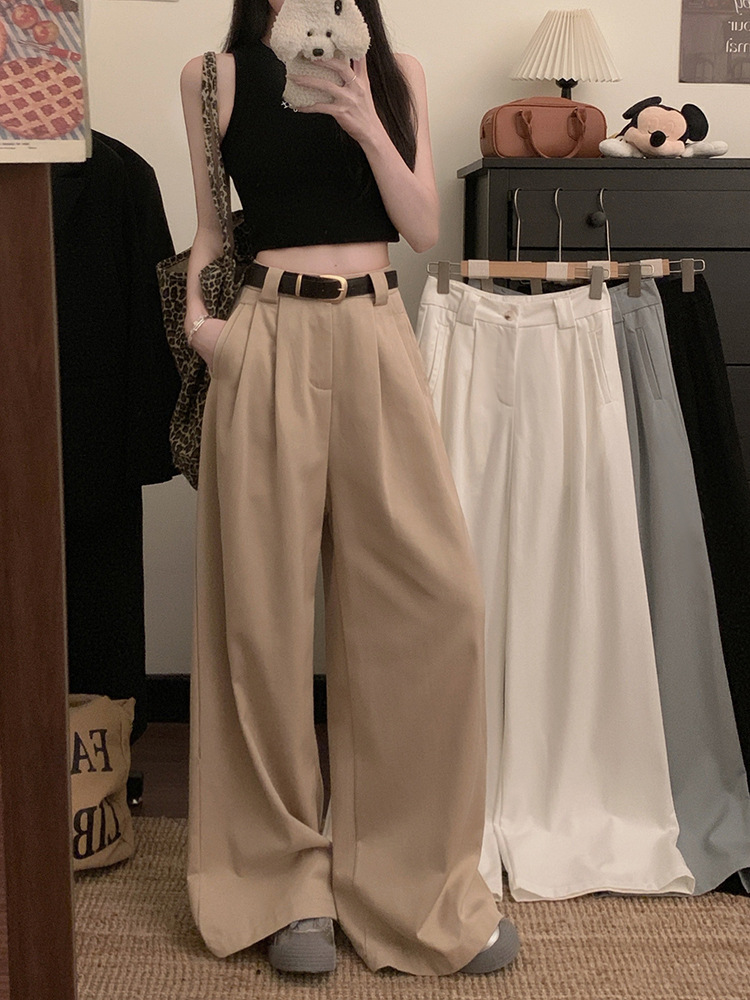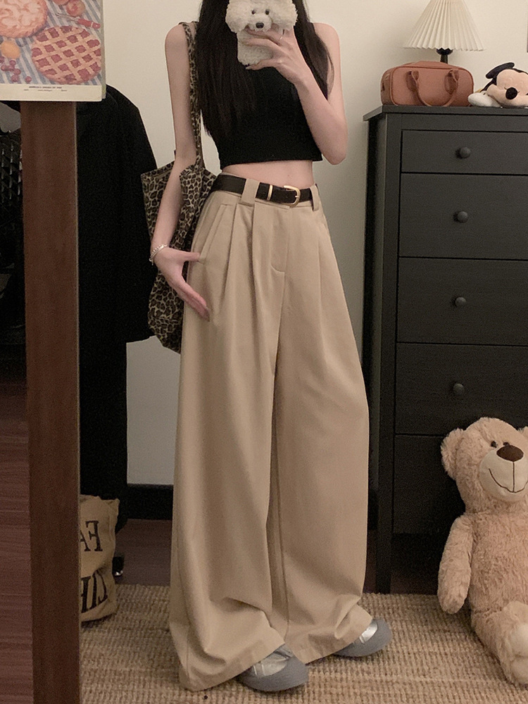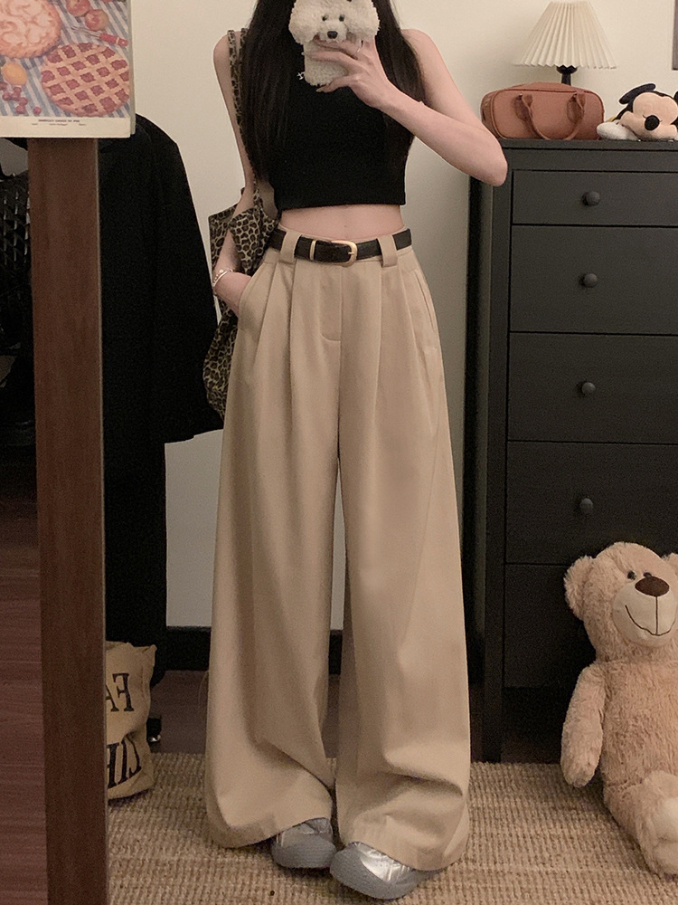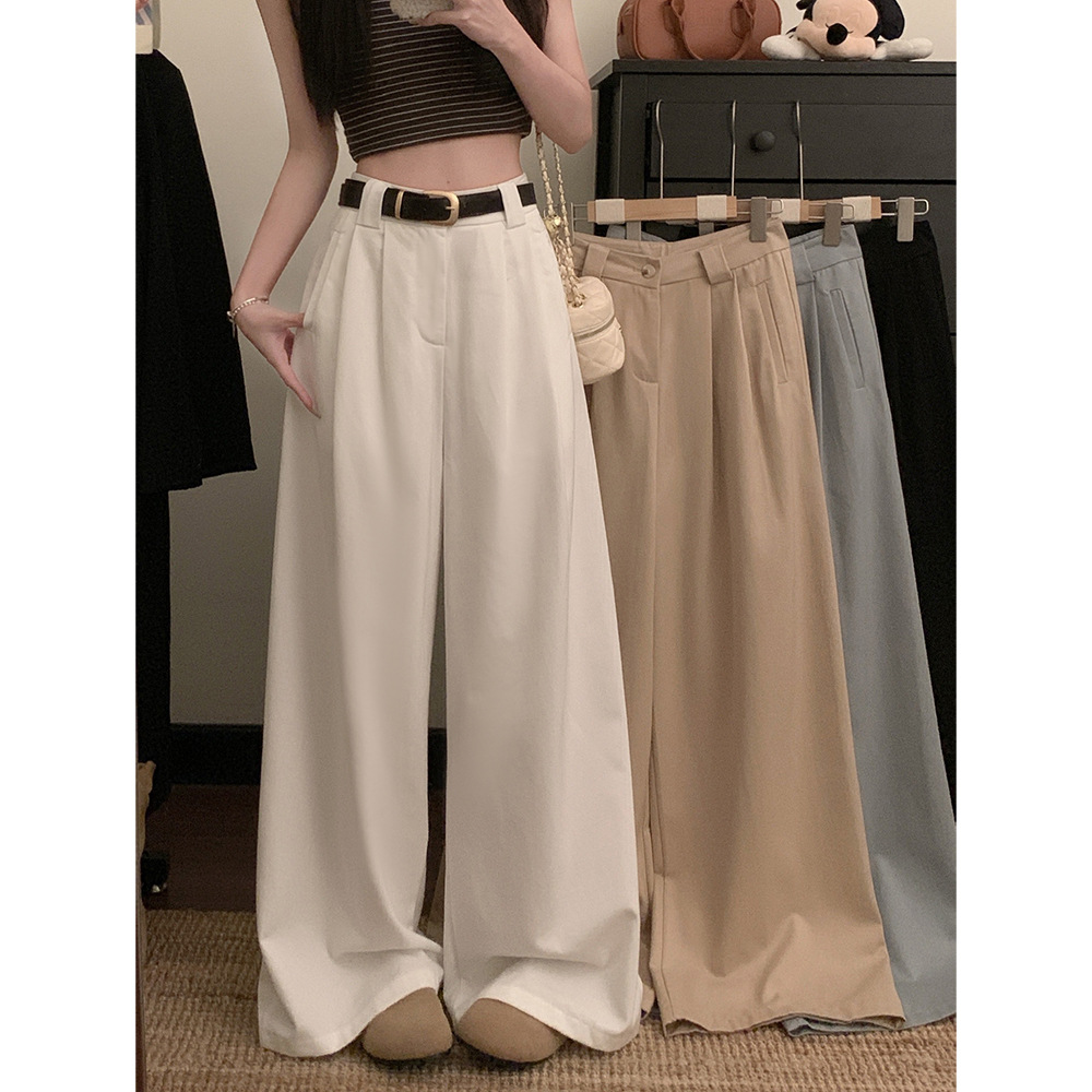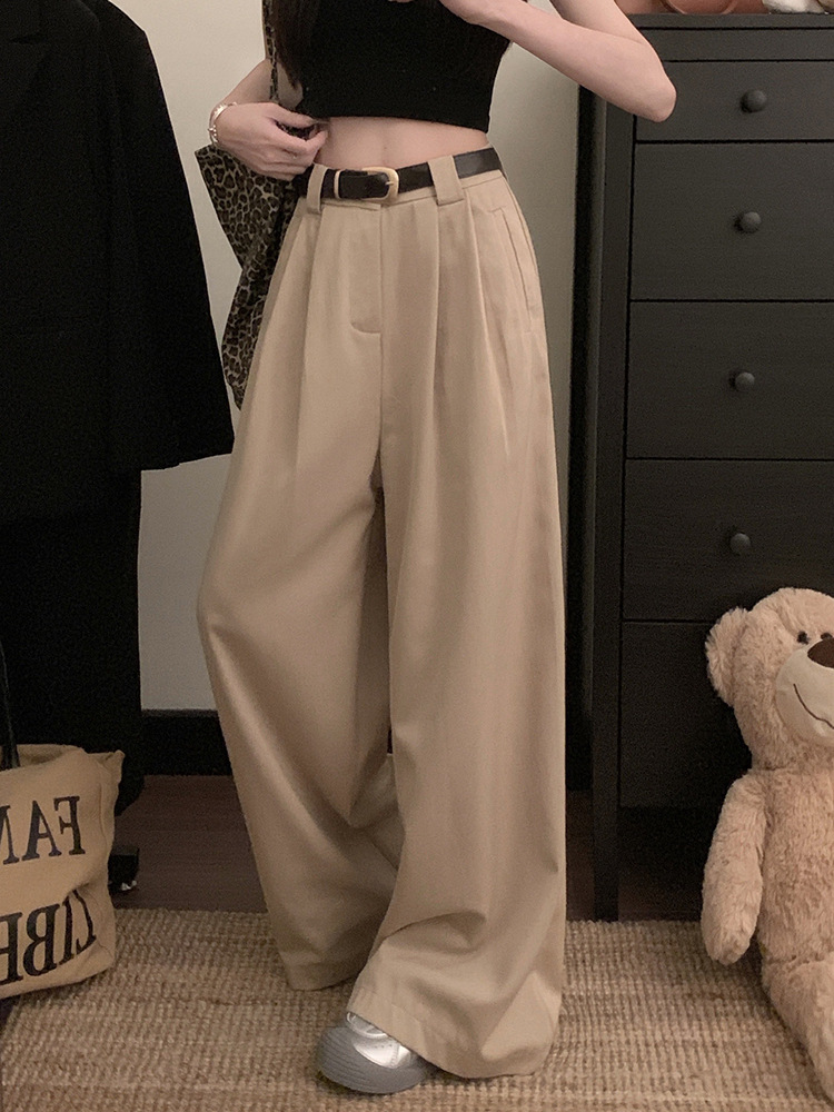 넓은 다리 바지 2025 봄과 여름 여성의 느슨한 슬리밍 캐주얼 바지 높은 허리 더미 바지 카키 바지스토어 가기