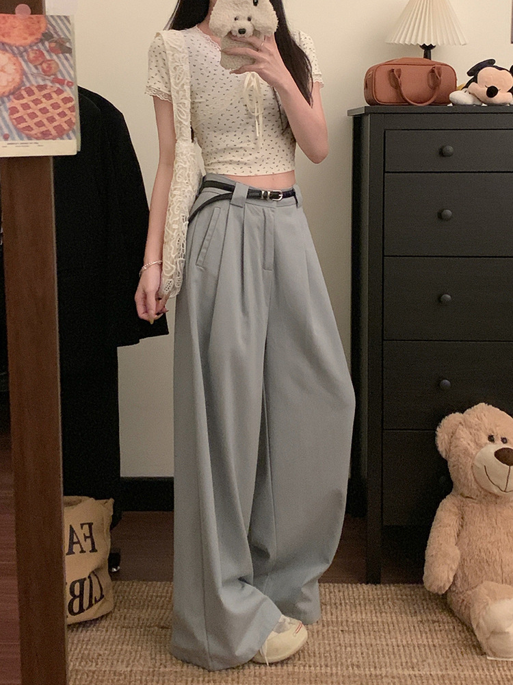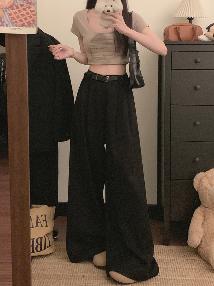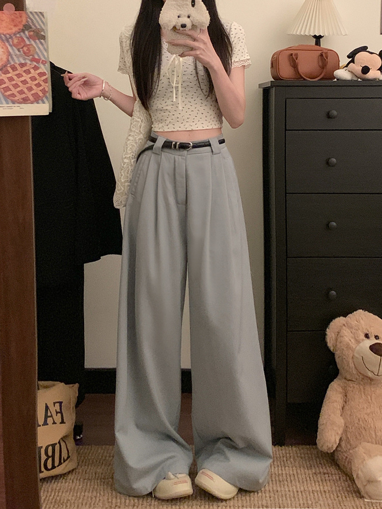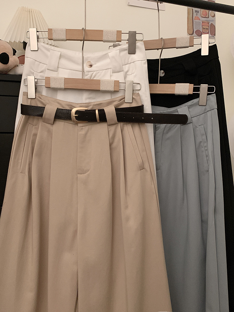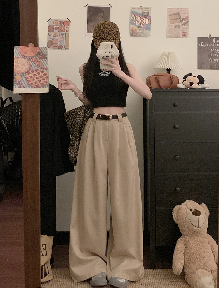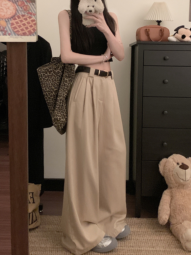 넓은 다리 바지 2025 봄과 여름 여성의 느슨한 슬리밍 캐주얼 바지 높은 허리 더미 바지 카키 바지스토어 가기