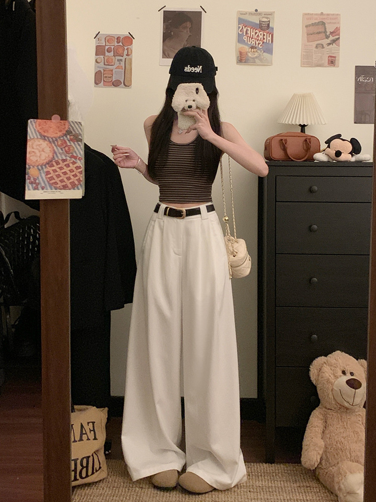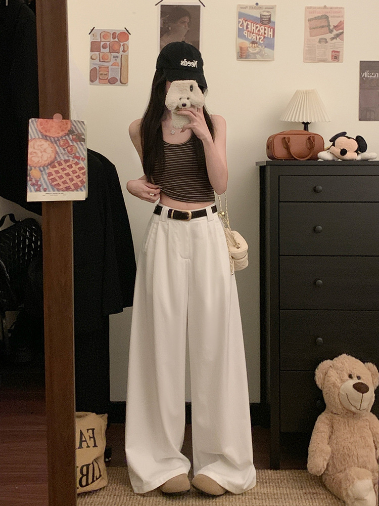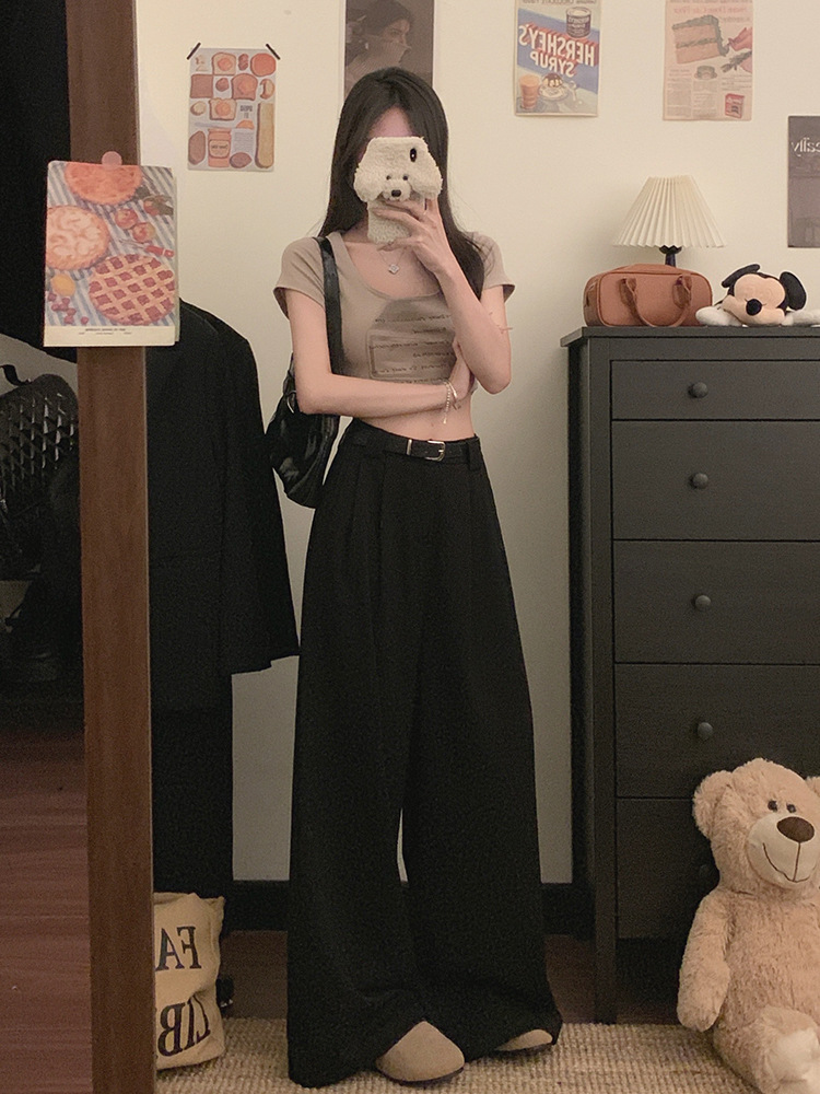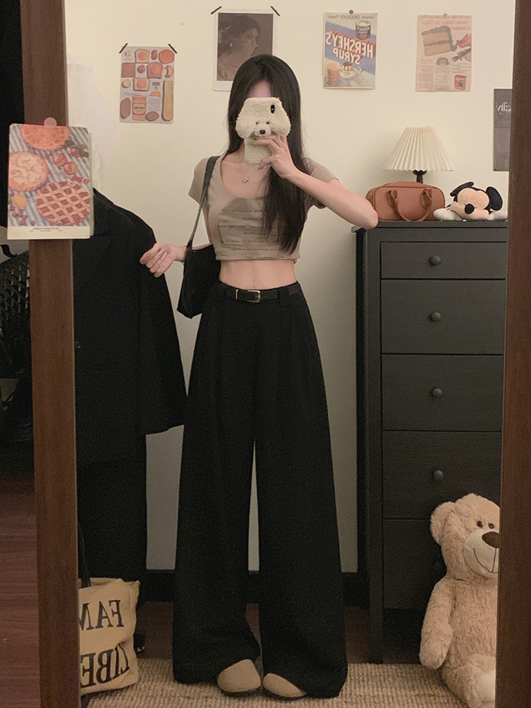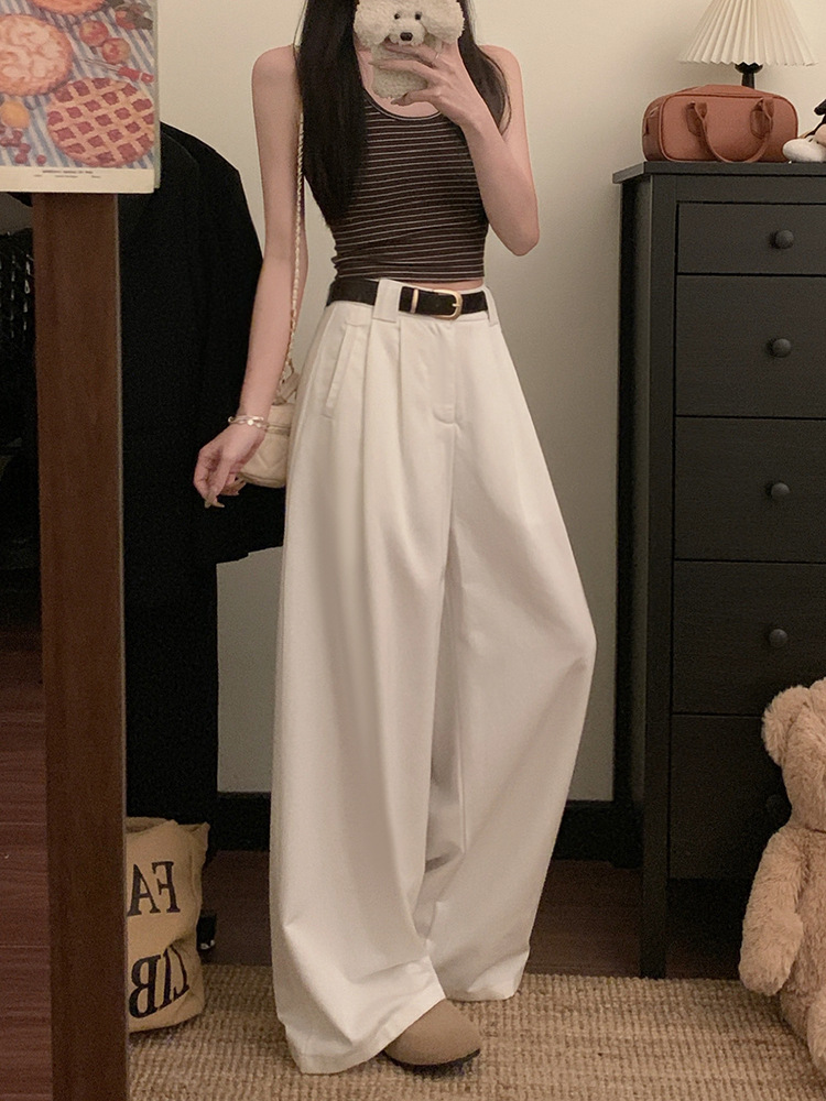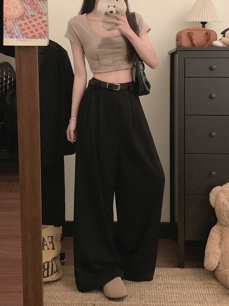 넓은 다리 바지 2025 봄과 여름 여성의 느슨한 슬리밍 캐주얼 바지 높은 허리 더미 바지 카키 바지스토어 가기