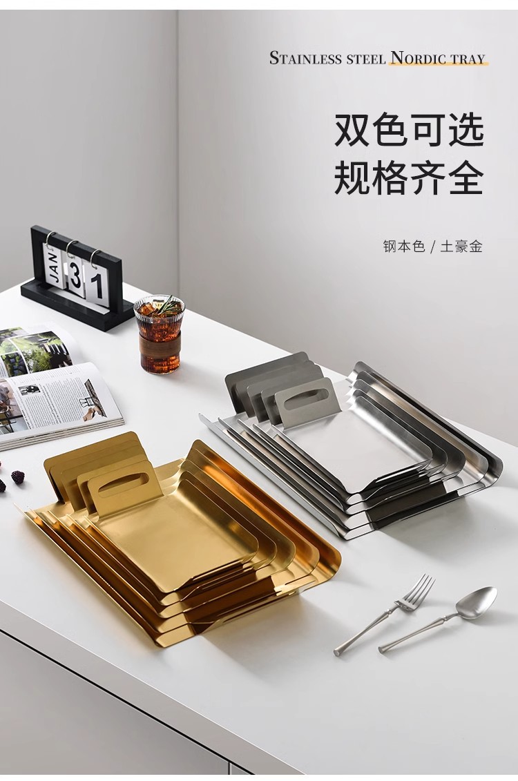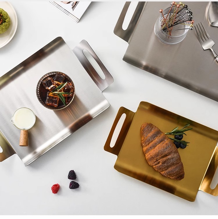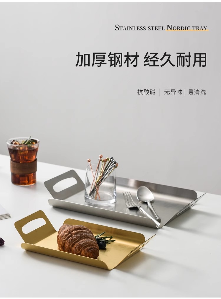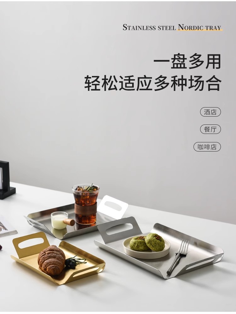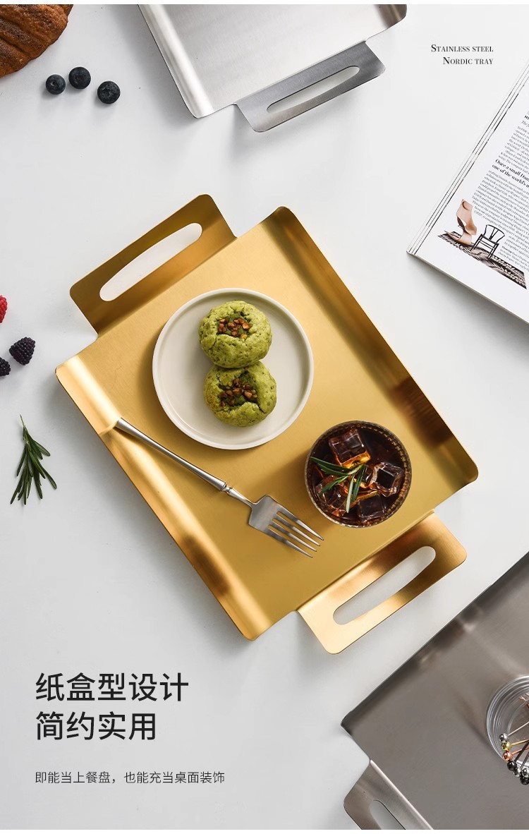 한국 스테인레스 스틸 북유럽 트레이 양이 빵 케이크 디저트 트레이 직사각형 차 트레이 서빙 트레이