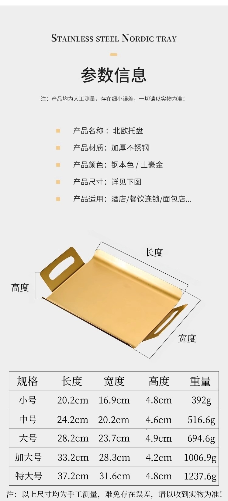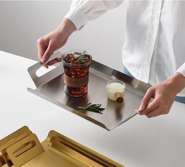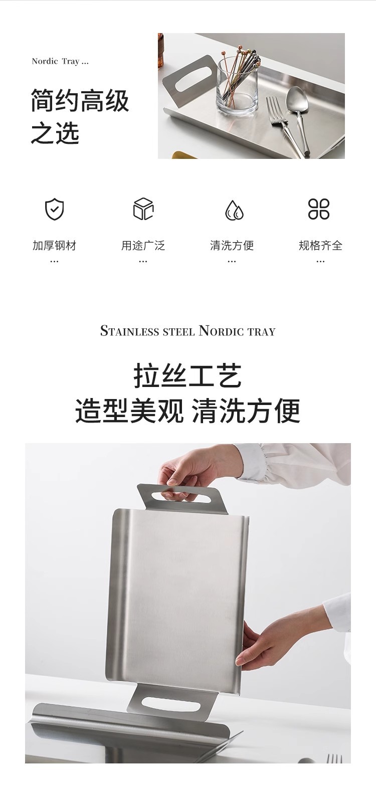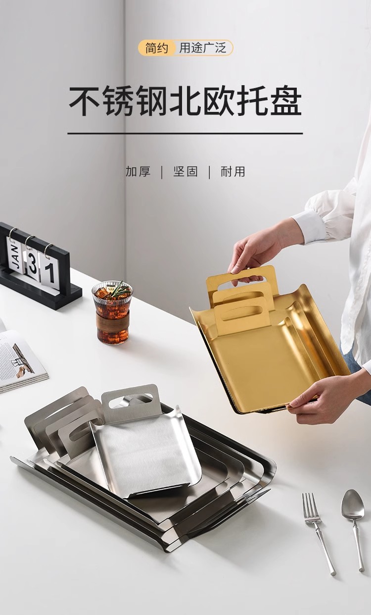 한국 스테인레스 스틸 북유럽 트레이 양이 빵 케이크 디저트 트레이 직사각형 차 트레이 서빙 트레이