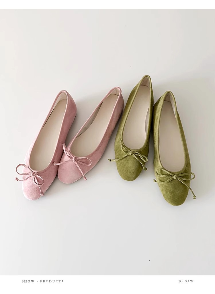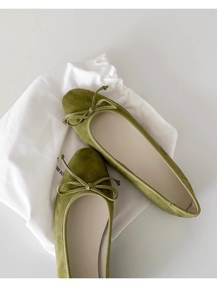 여성용 스팟 버전 정품 가죽 슬립온 소프트솔 펌프스, 다용도 리본 라운드 토 플랫 메리제인 발레 슈즈스토어 가기