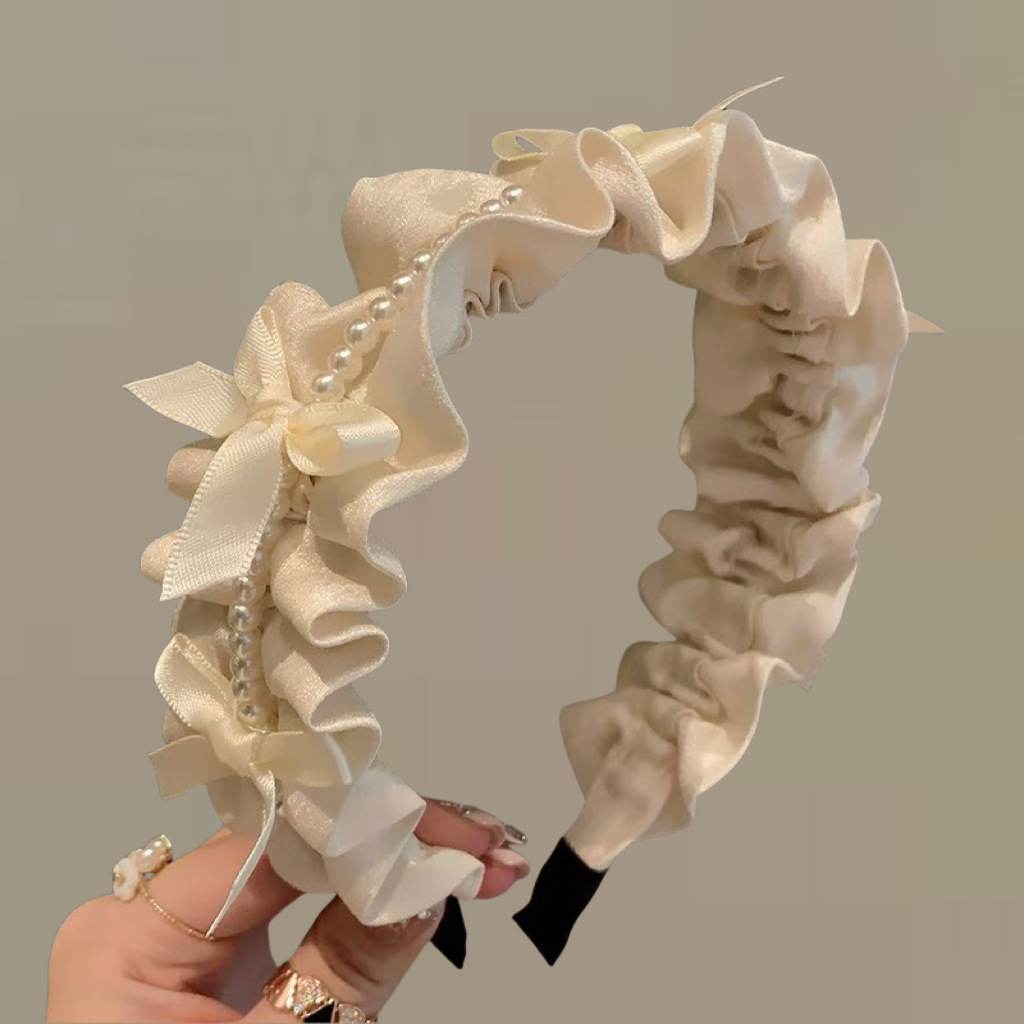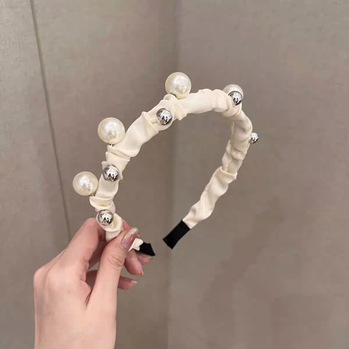 한국식 메쉬 구슬 머리 후프 여성의 봄과 여름 새로운 주름 활 높은 두개골 머리 후프 올 매치 압력 헤어 워시 헤어