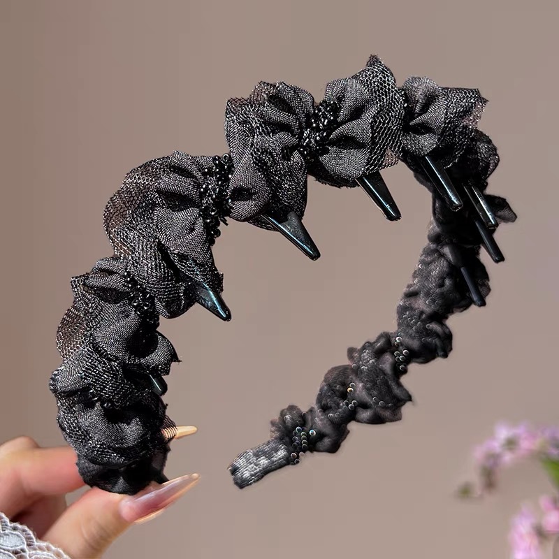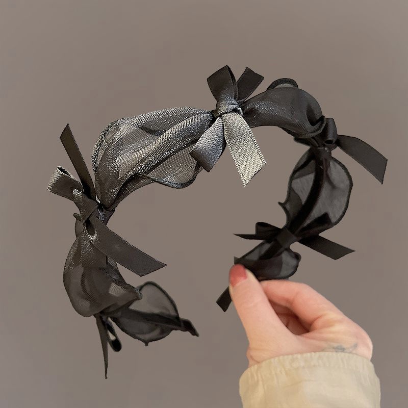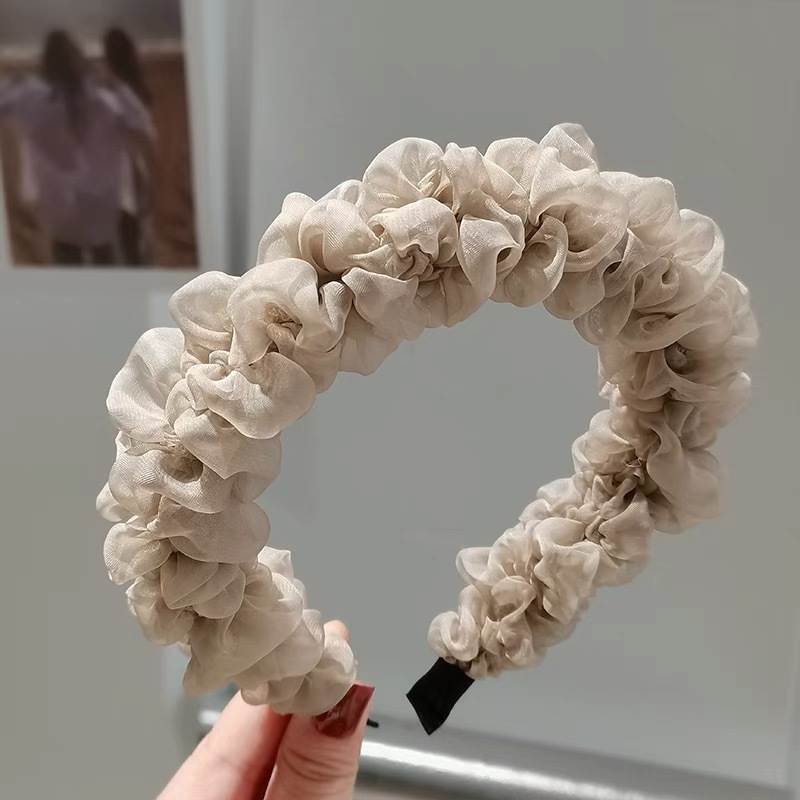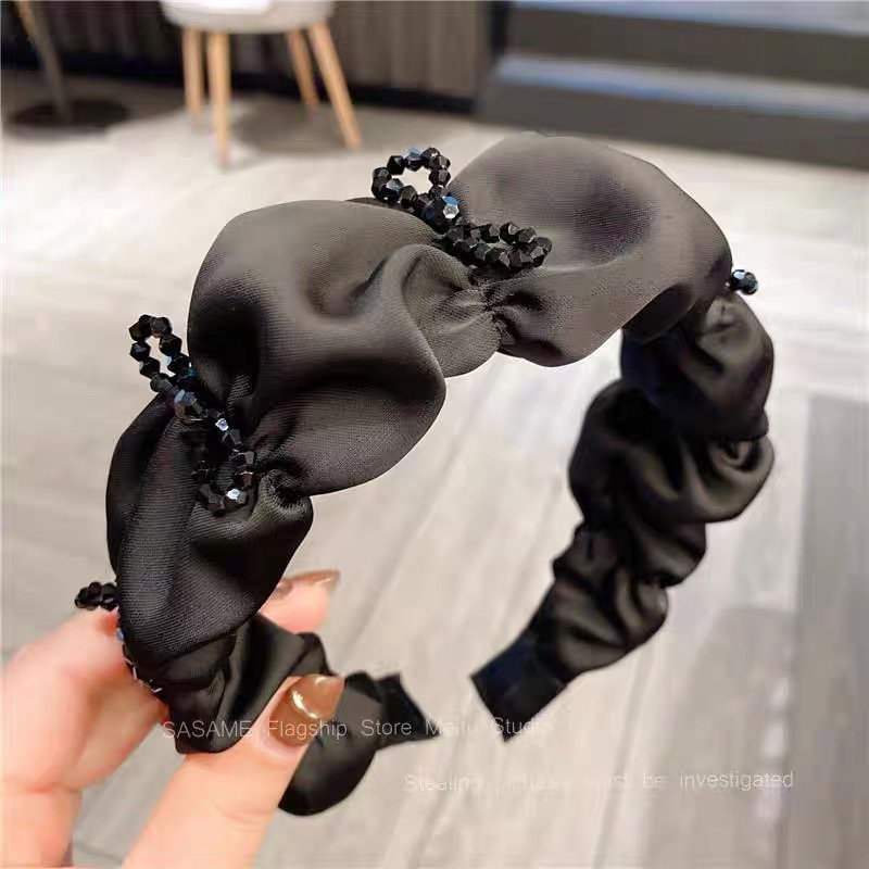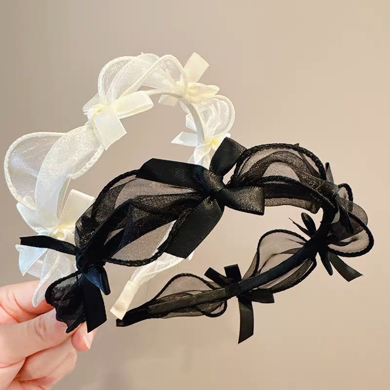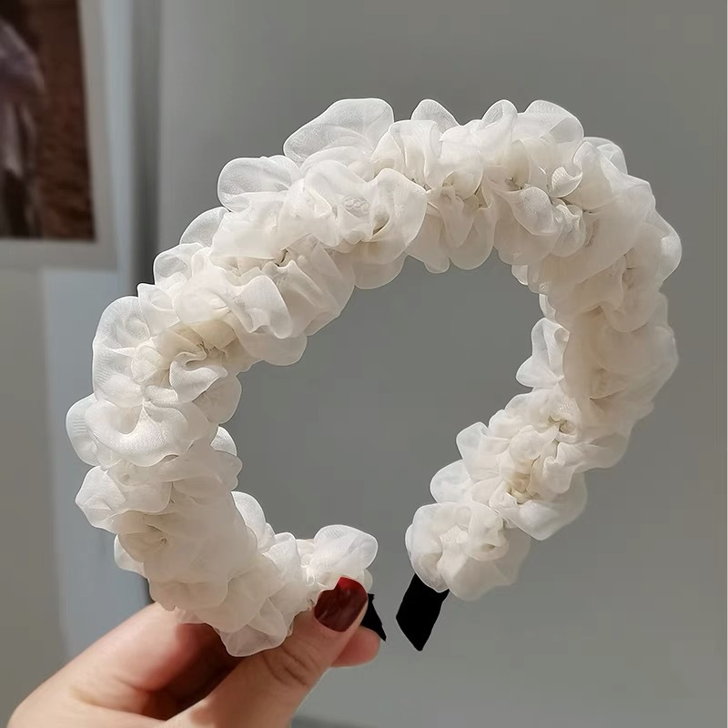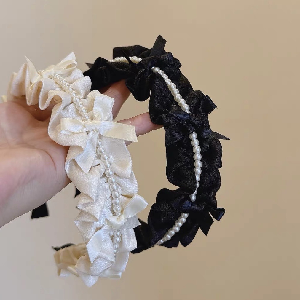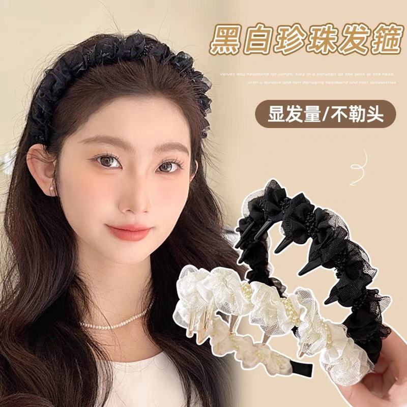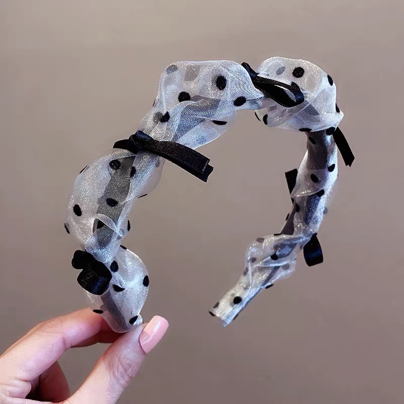 한국식 메쉬 구슬 머리 후프 여성의 봄과 여름 새로운 주름 활 높은 두개골 머리 후프 올 매치 압력 헤어 워시 헤어스토어 가기
