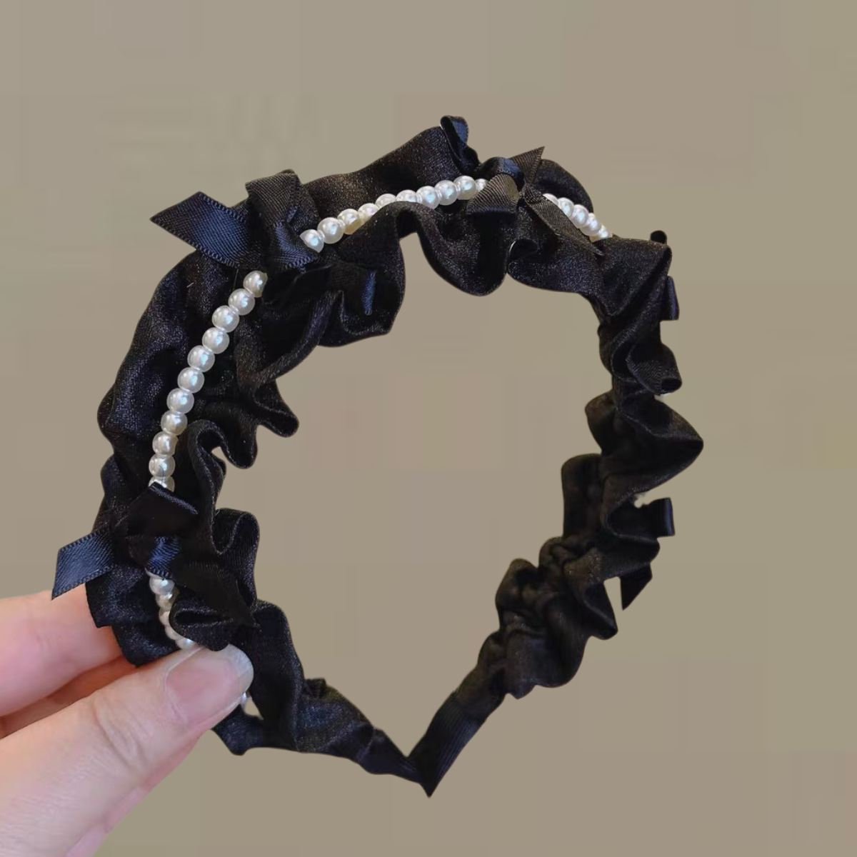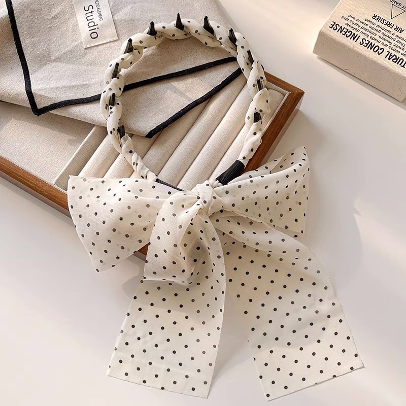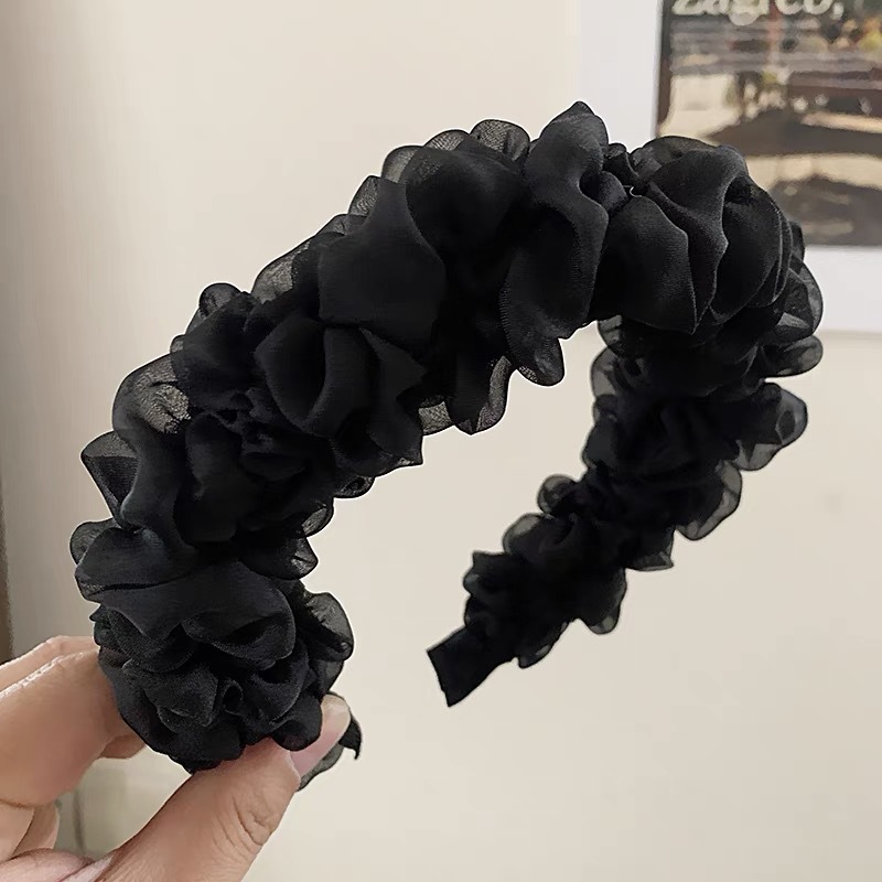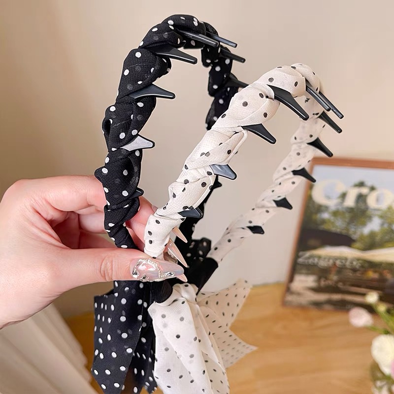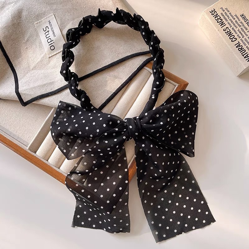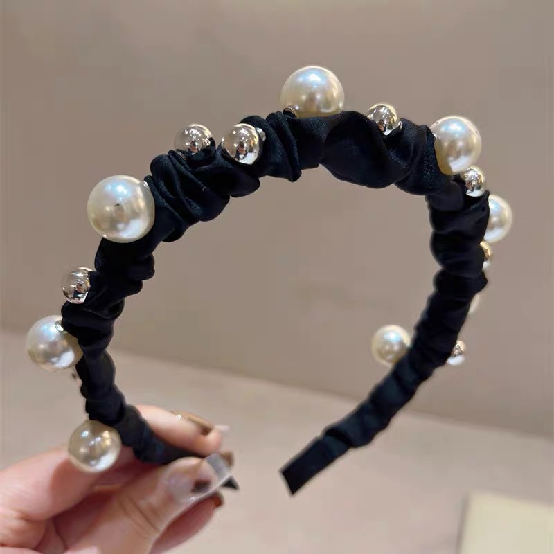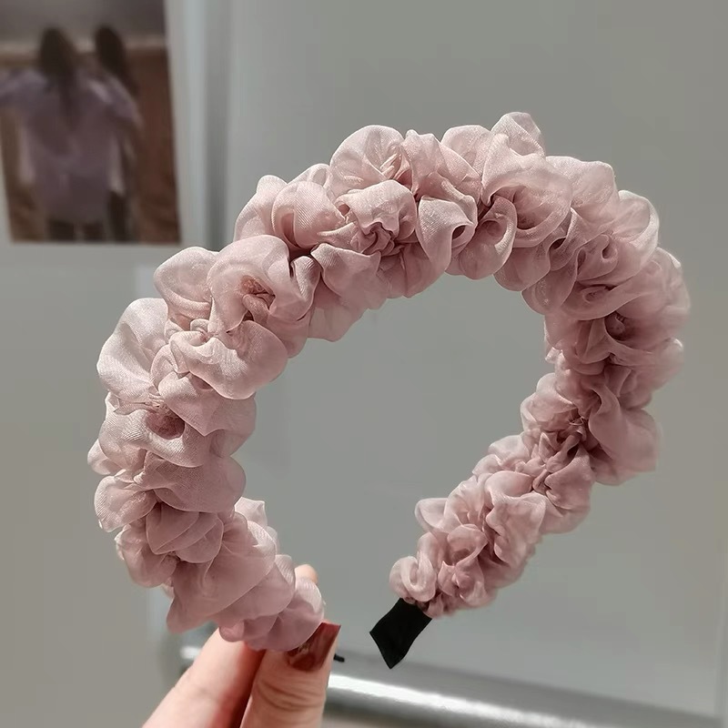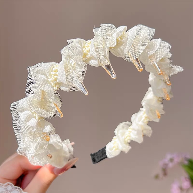 한국식 메쉬 구슬 머리 후프 여성의 봄과 여름 새로운 주름 활 높은 두개골 머리 후프 올 매치 압력 헤어 워시 헤어스토어 가기