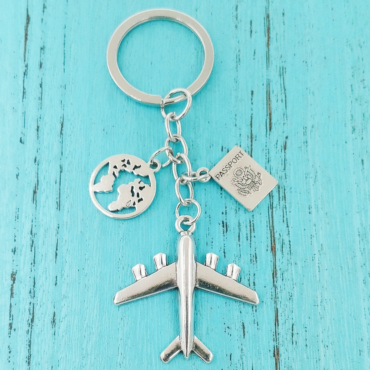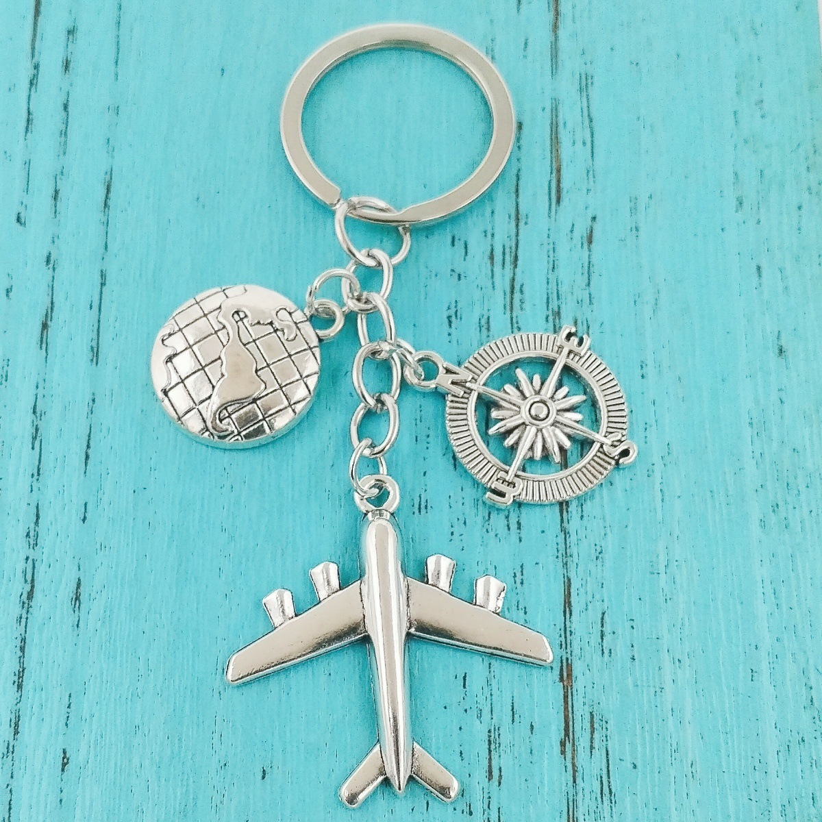 대외 무역 인기 합금 항공기 나침반 지구본 여권 여행 열쇠 고리 졸업 시즌 자동차 가방 펜던트스토어 가기