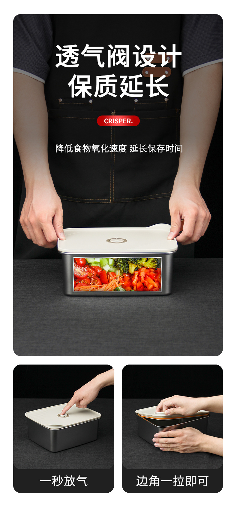 공장 직접 판매 일본식 크리스퍼 스테인레스 스틸 냉장고 보관 상자 냉장 밀봉 도시락 상자 식품 크리스퍼