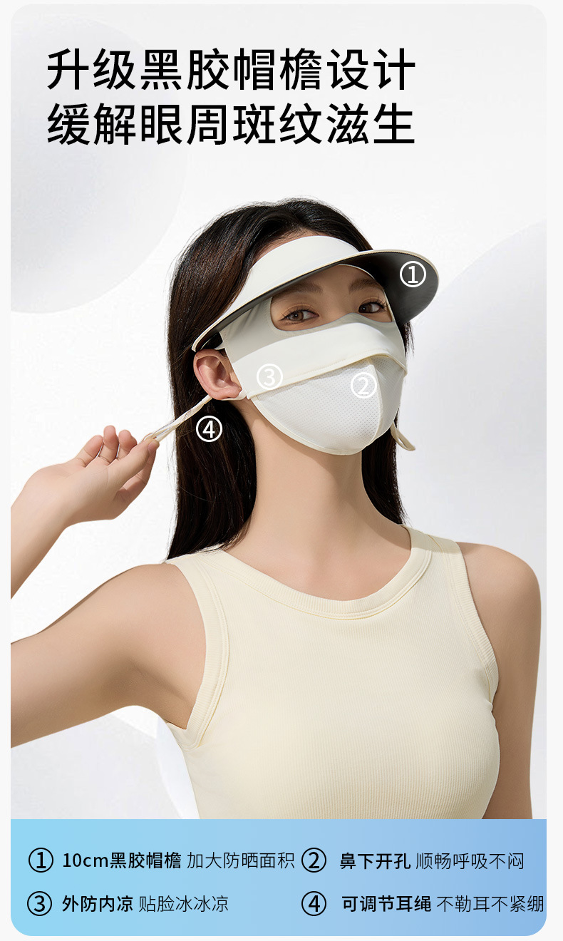 아이스 실크 자외선 차단 마스크, 챙이 있는 풀 페이스 마스크, 같은 스타일의 페이스 마스크, 눈만 노출, 여름 자외선 차단스토어 가기