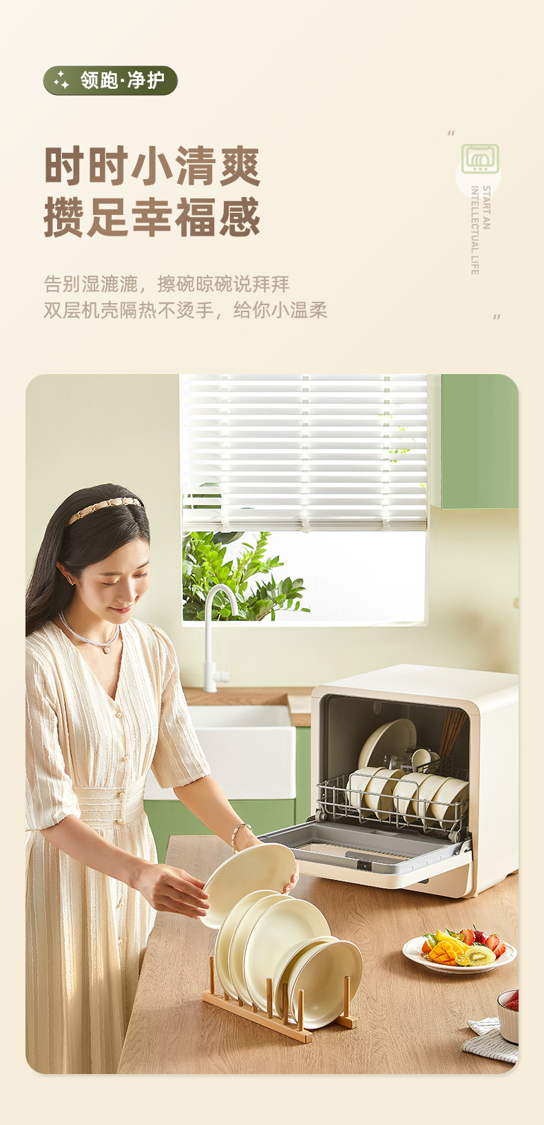 • "6인용 베이지"" 수입 단일 주파수 모터 + 이중층 항균 본체 + 75"°고온세척 + 신선한 공기 순환 시스템