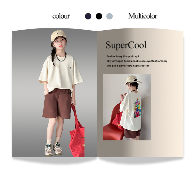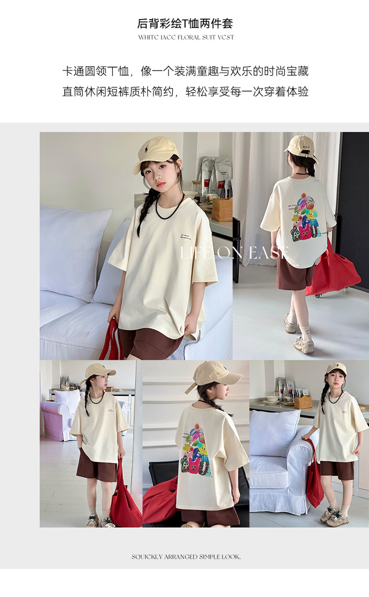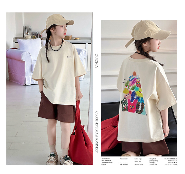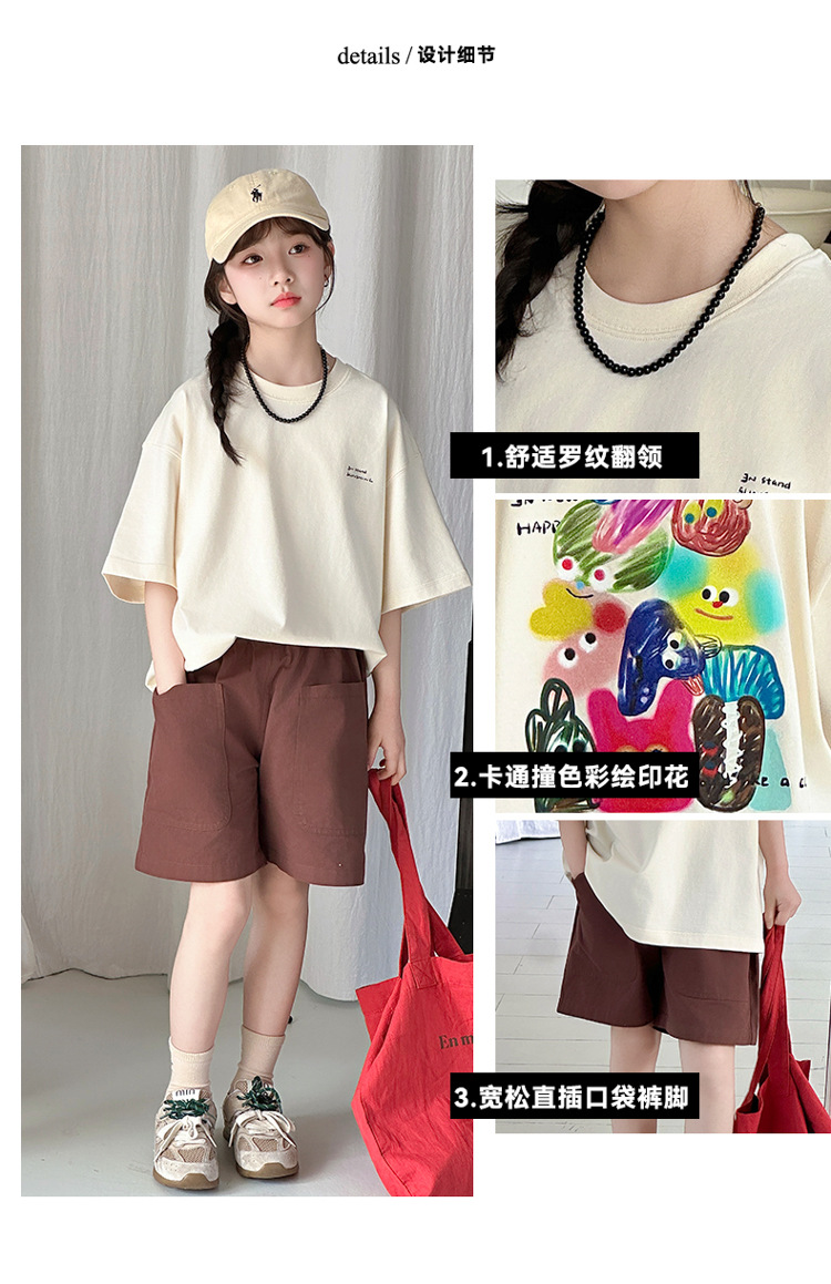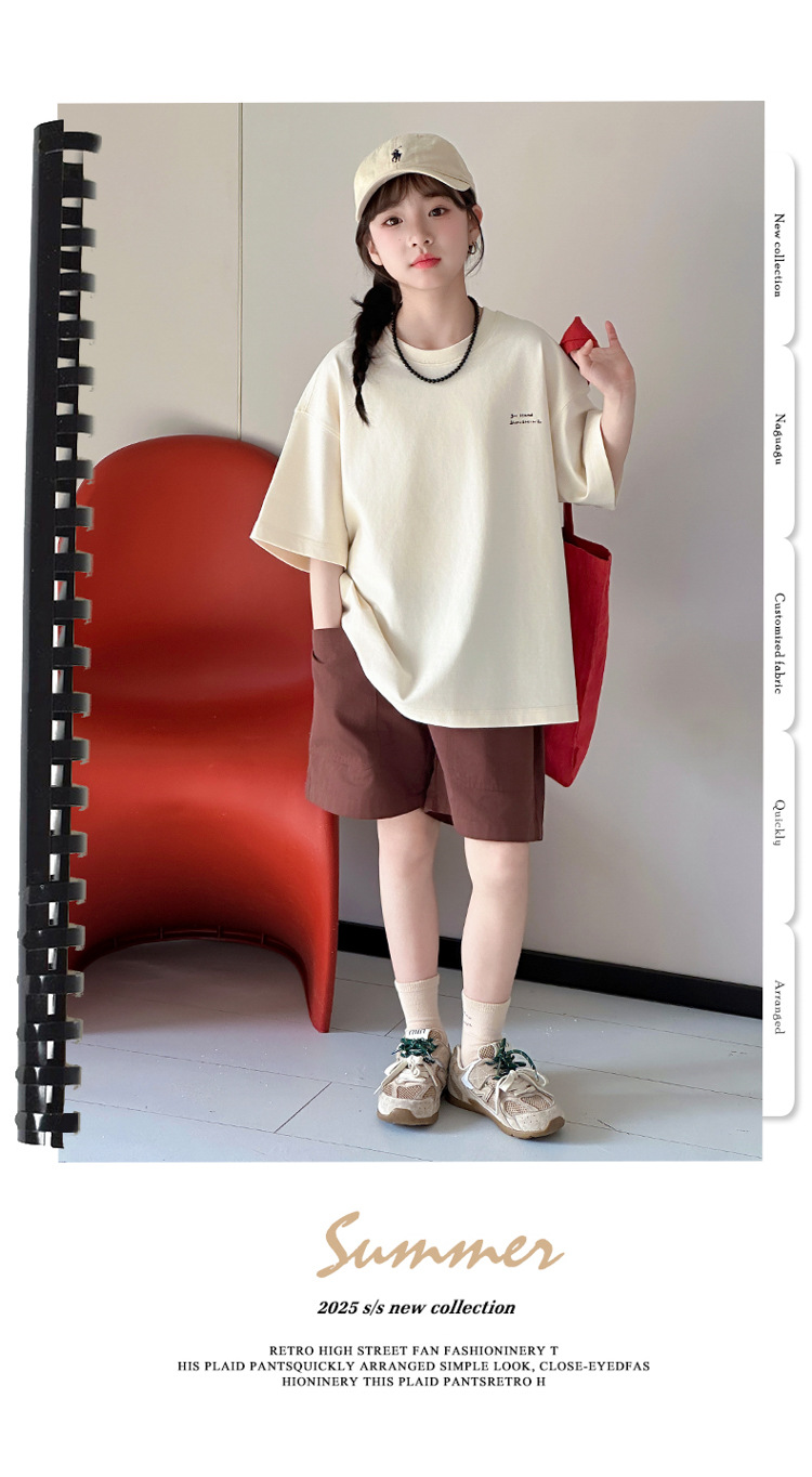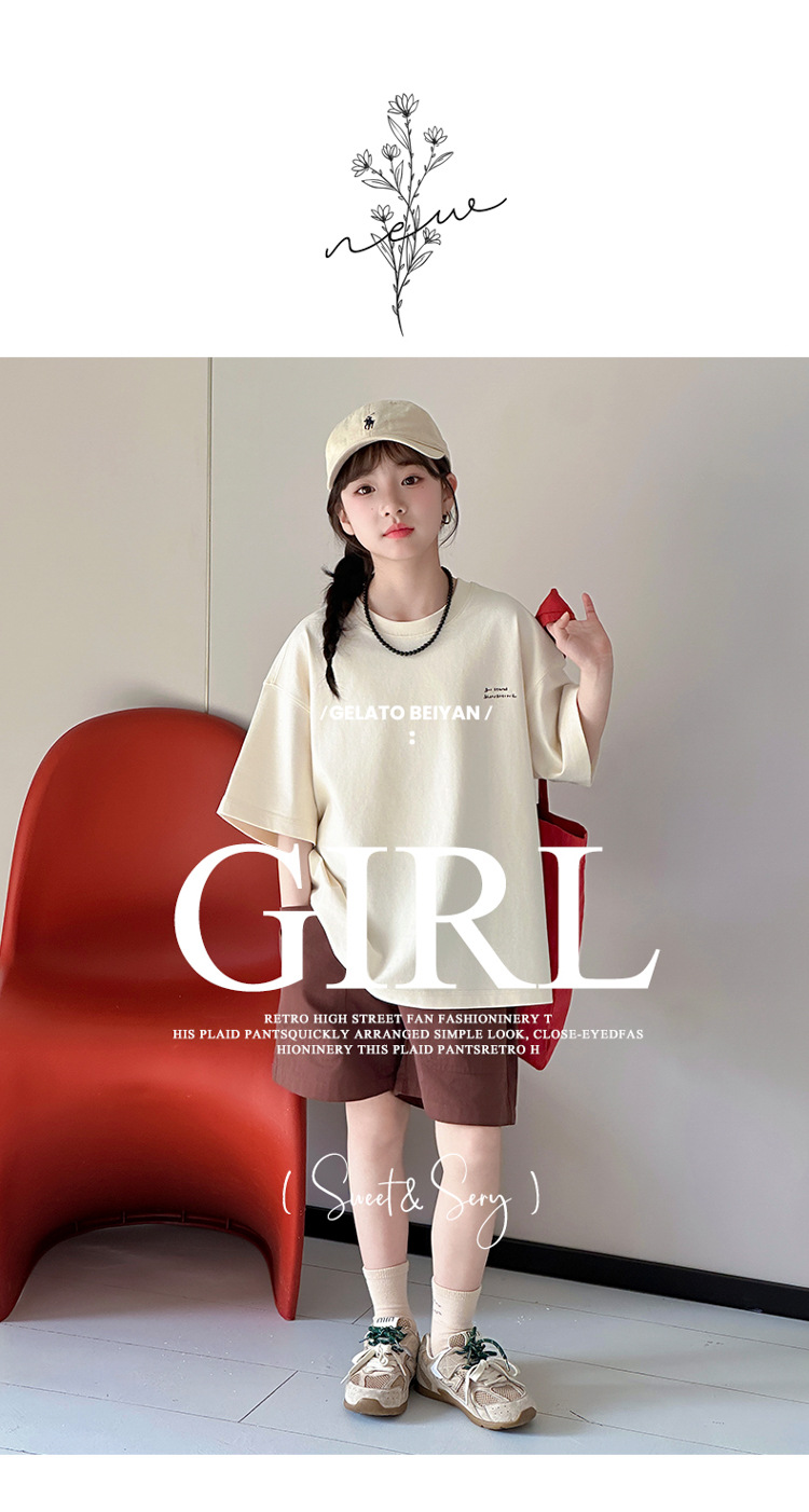 여자 반팔 티셔츠 2025 여름 새 어린이 여름 서양식 한국 톱 걸스 캐주얼 반바지 세트