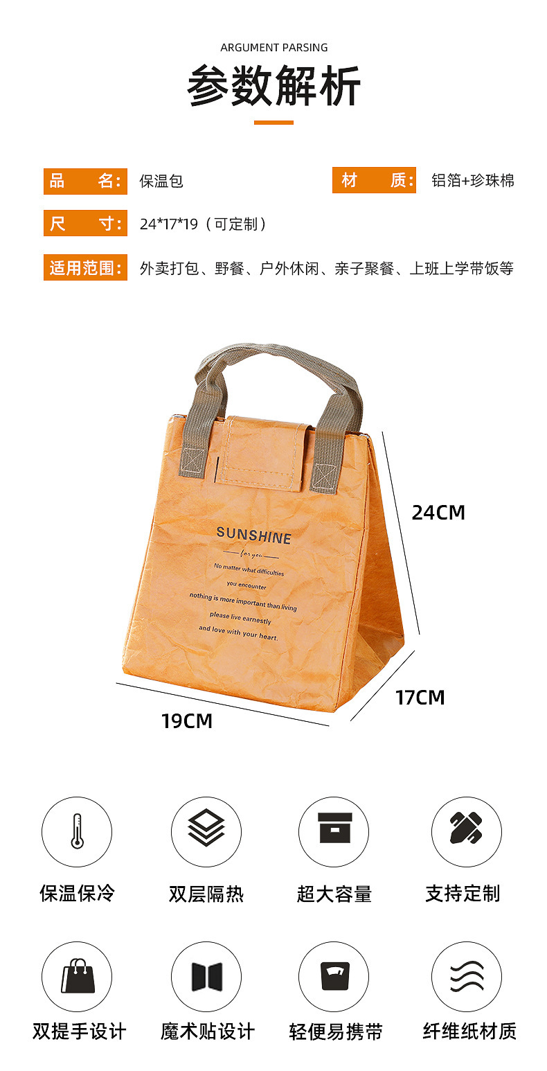 일본식 휴대용 듀폰 종이 도시락 도시락 알루미늄 호일 방수 및 내유성 절연 가방 사무실 근로자를 위한 휴대용 핸드백