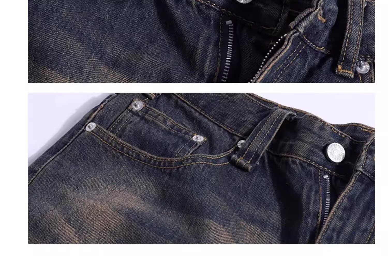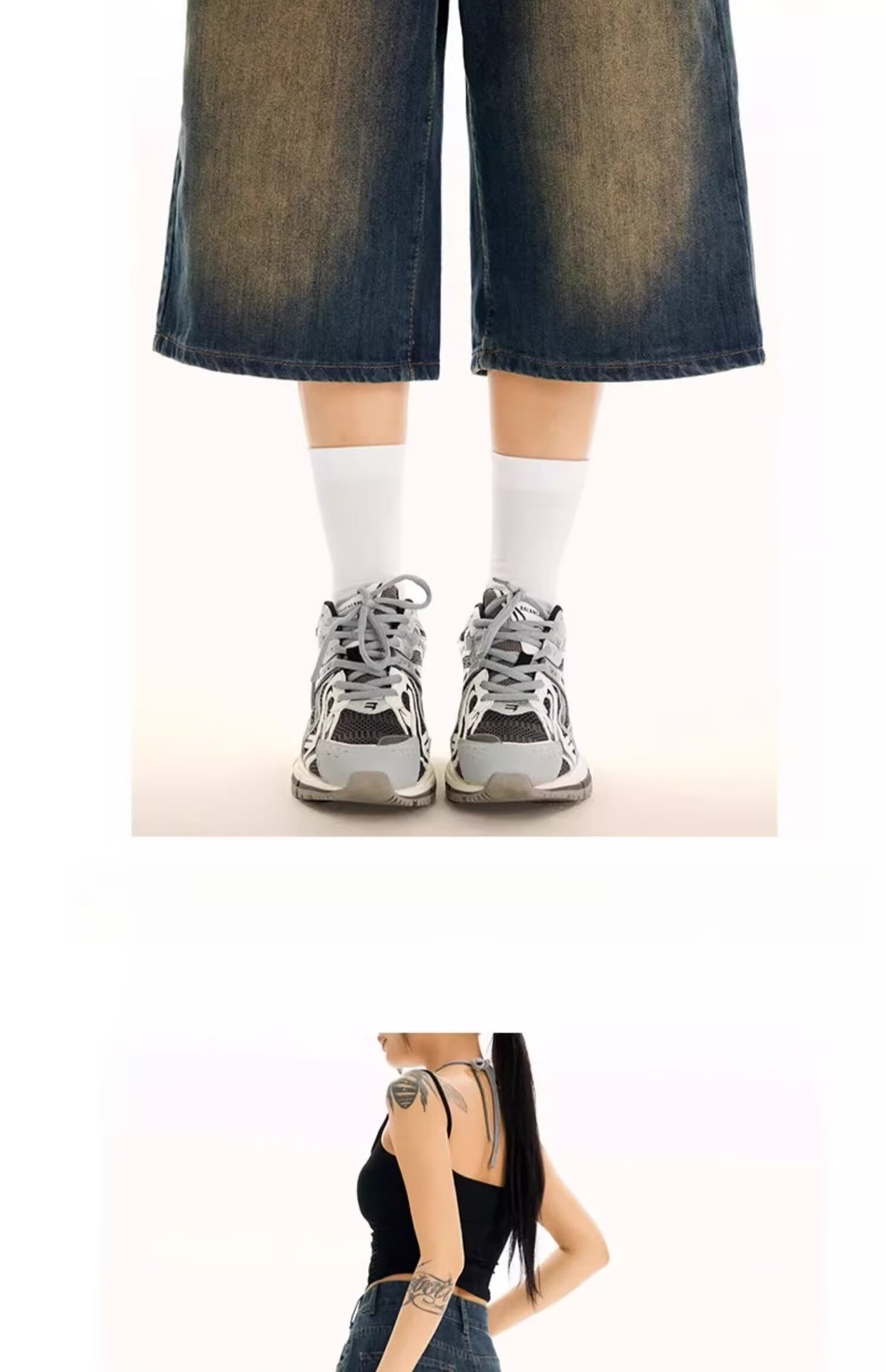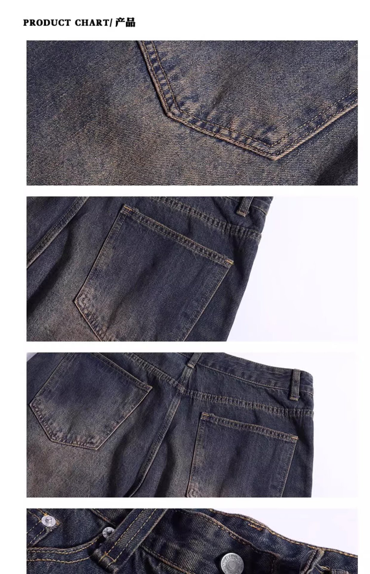 와이드 레그 7 포인트 청바지 봄과 여름 빈티지 올드 아메리칸 스타일 하이 스트리트 루즈 미드 레그 트렌디 반바지 남성과 여성스토어 가기