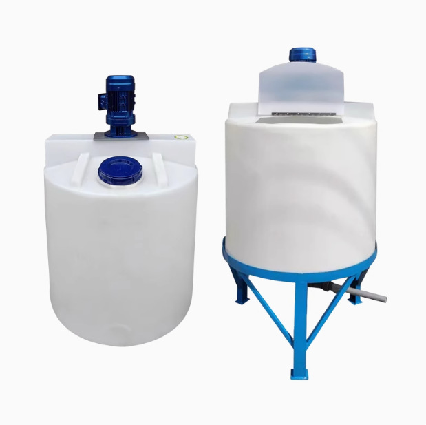 모터가있는 두꺼운 플라스틱 혼합 탱크 1000L 산 및 알칼리 방지 부식 방지 콘 바닥 플라스틱 버킷 PE 도징 박스