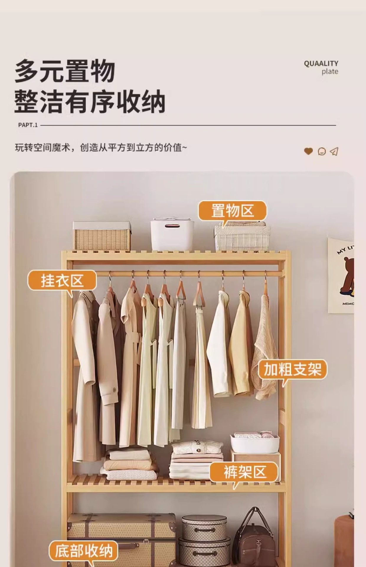 옷 옷걸이 바닥 침실 가정용 보관 보관 캐비닛 침대 옆 옷 밤 대나무 다기능 코트 랙