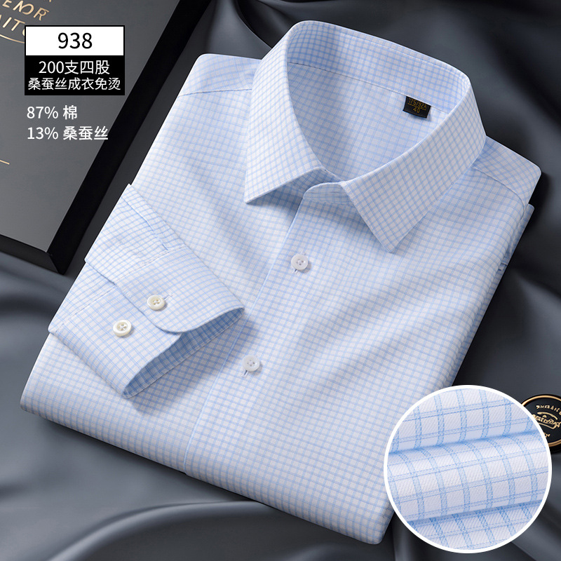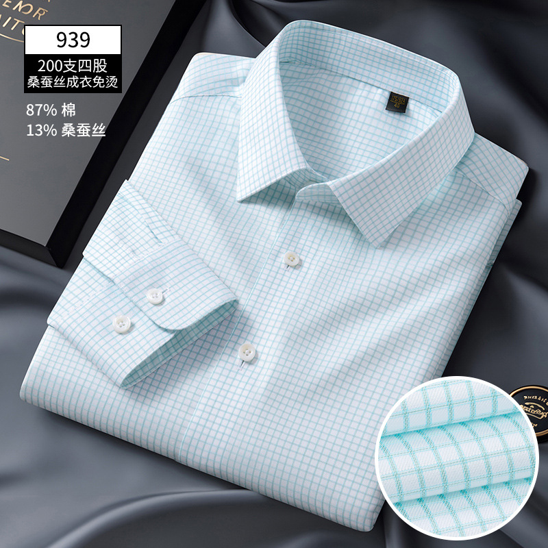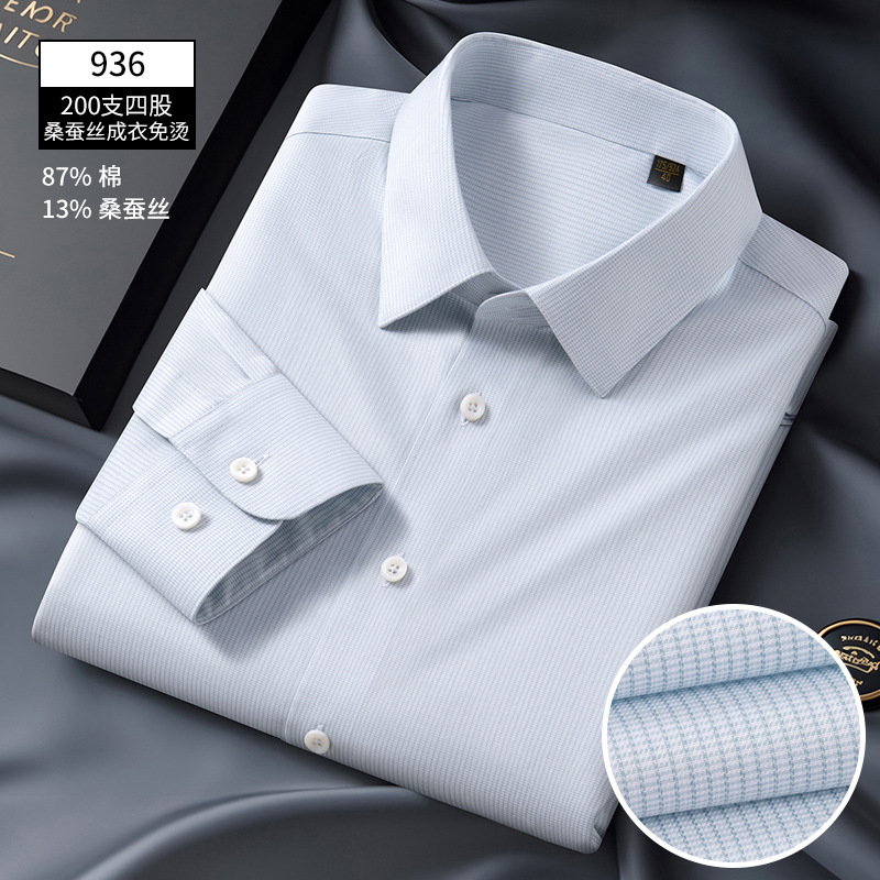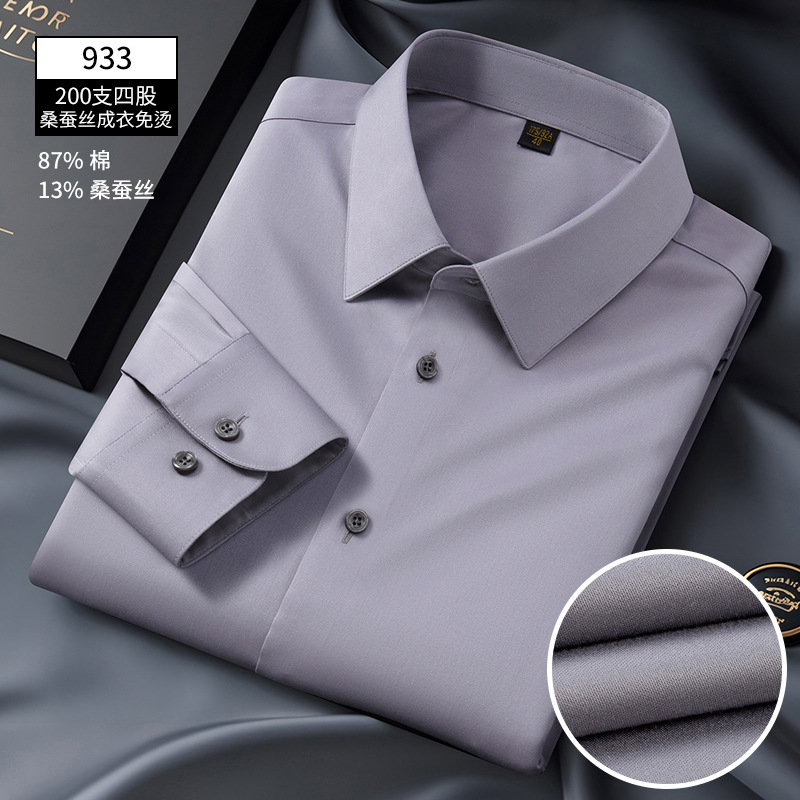 의류의 하이 엔드 감각 아이언 프리 200 4 가닥 뽕나무 실크 셔츠 남성 긴소매 얇은 비즈니스 캐주얼 실크 셔츠