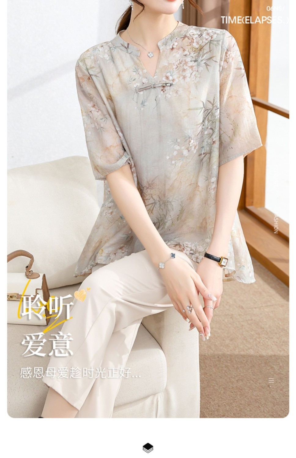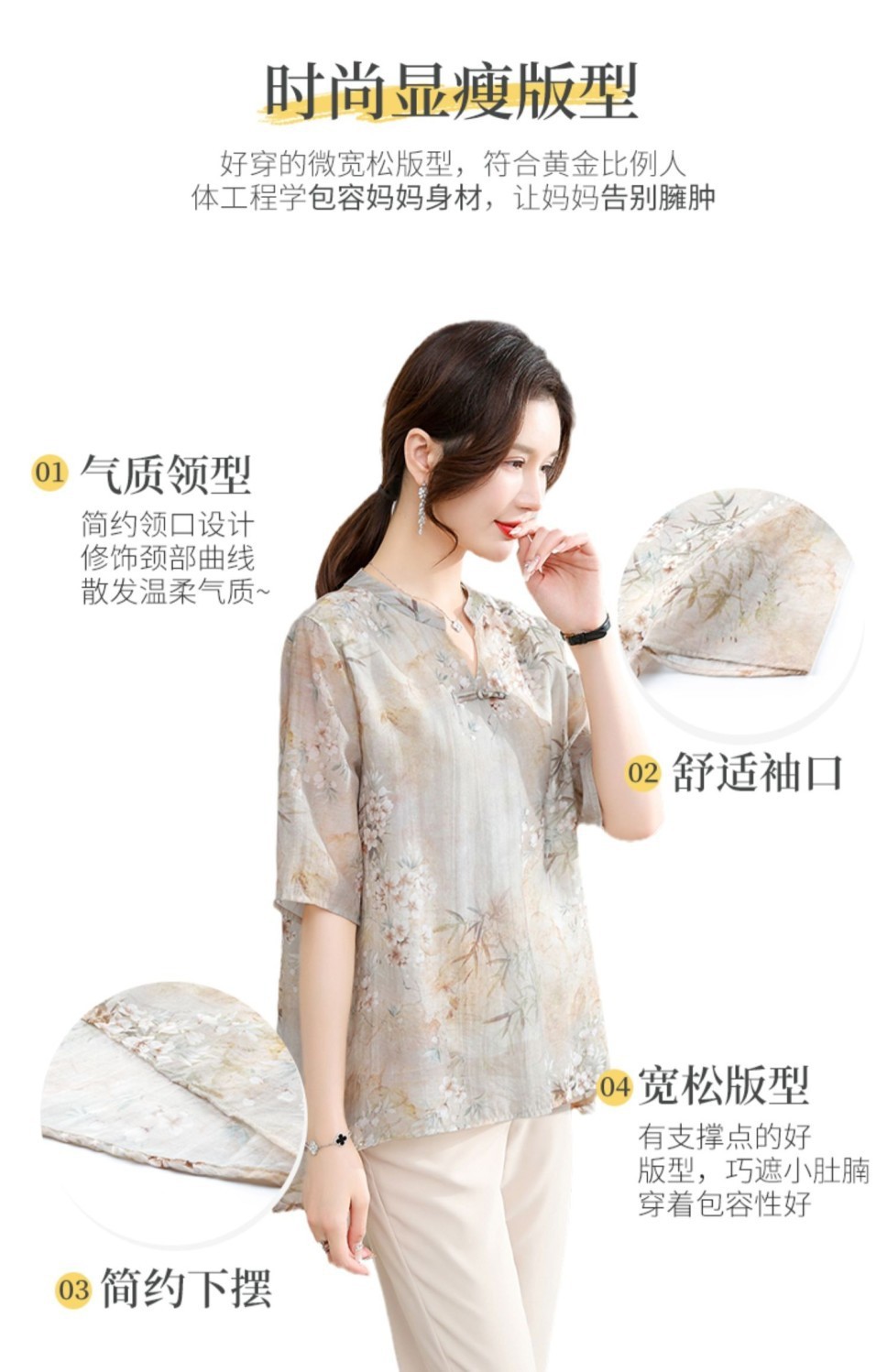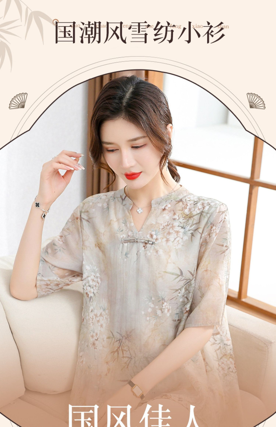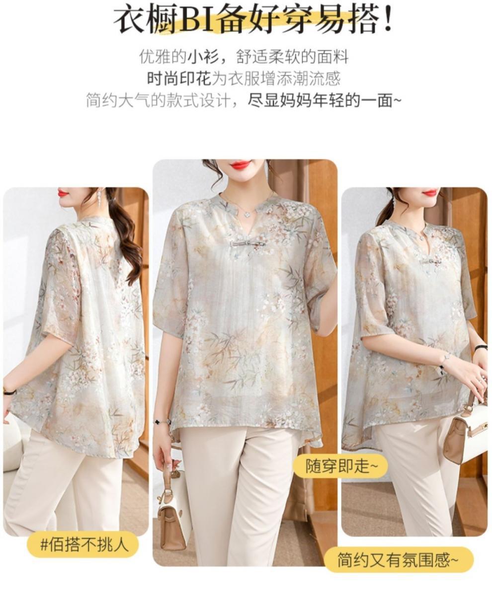 [2138 명] 새로운 중국 어머니 2025 여름 새로운 반팔 쉬폰 셔츠 패션 세트 중년스토어 가기
