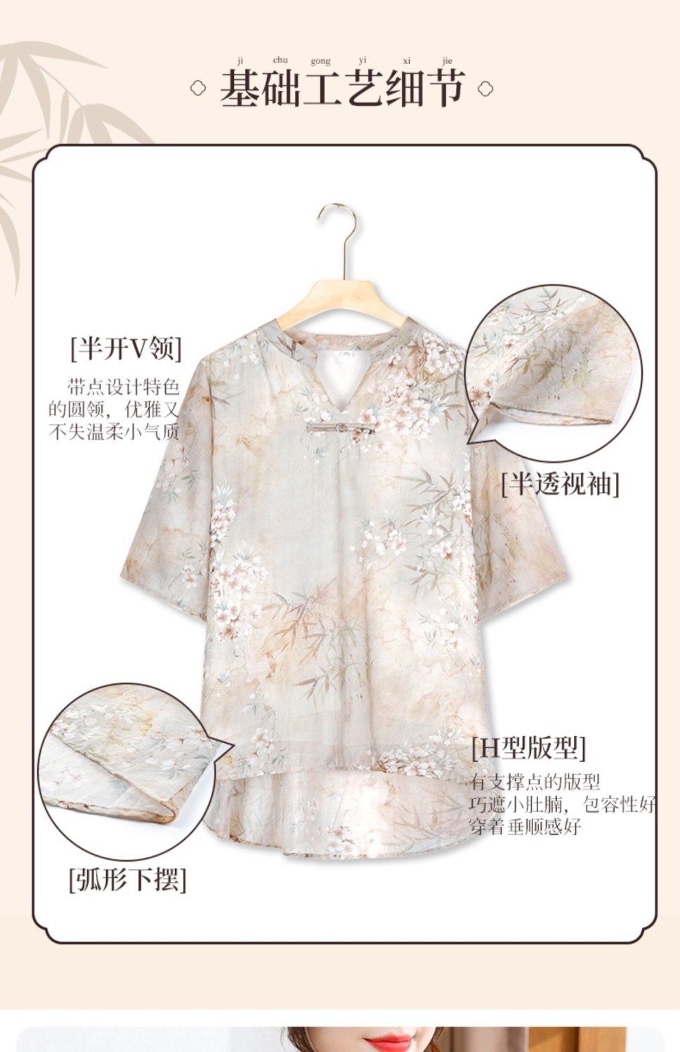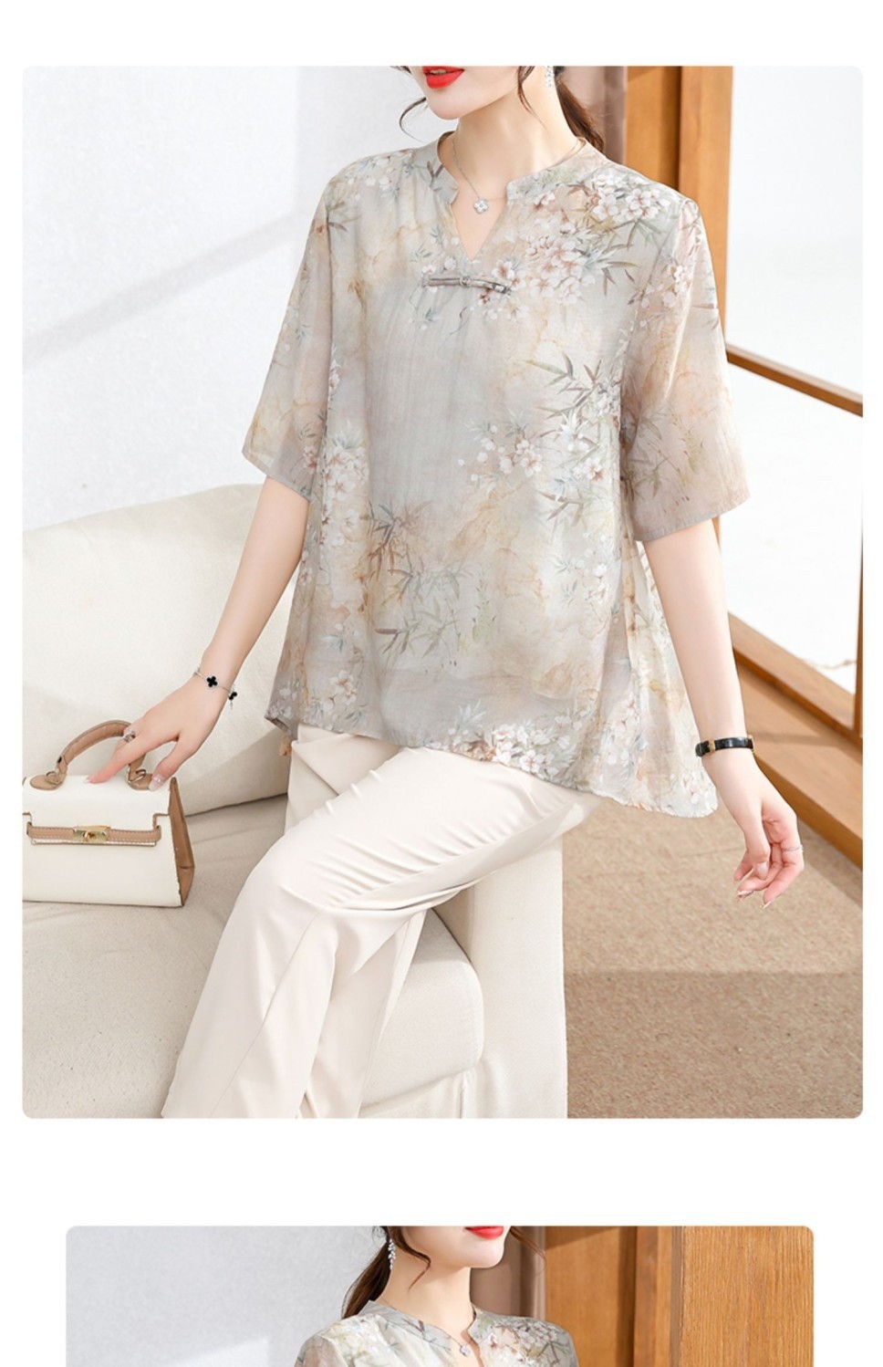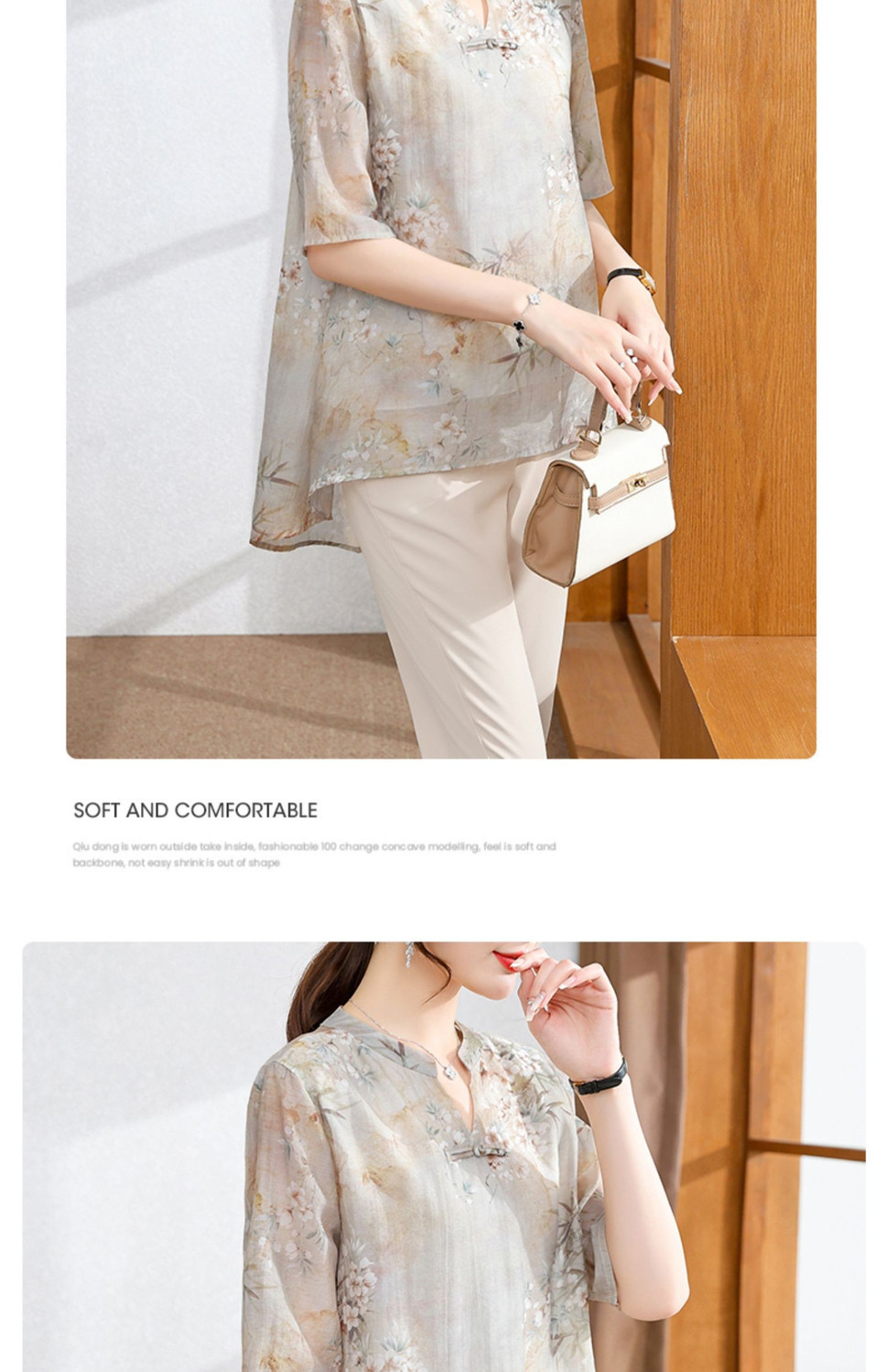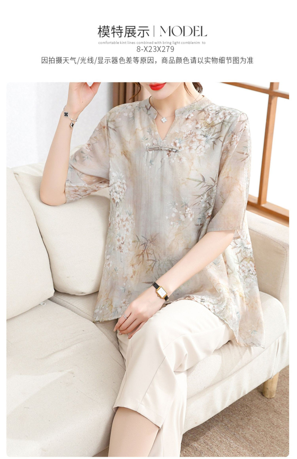 [2138 명] 새로운 중국 어머니 2025 여름 새로운 반팔 쉬폰 셔츠 패션 세트 중년스토어 가기