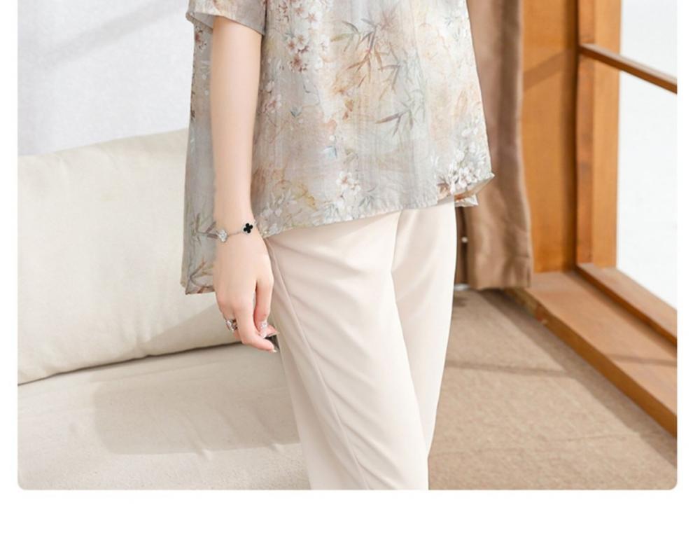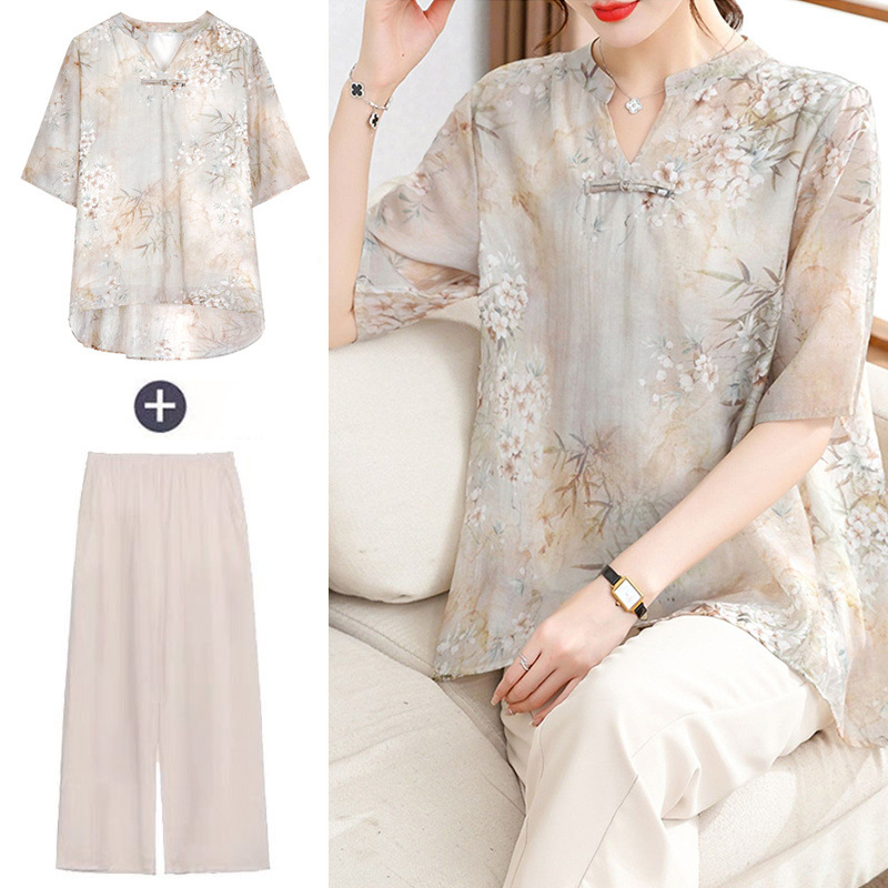 [2138 명] 새로운 중국 어머니 2025 여름 새로운 반팔 쉬폰 셔츠 패션 세트 중년