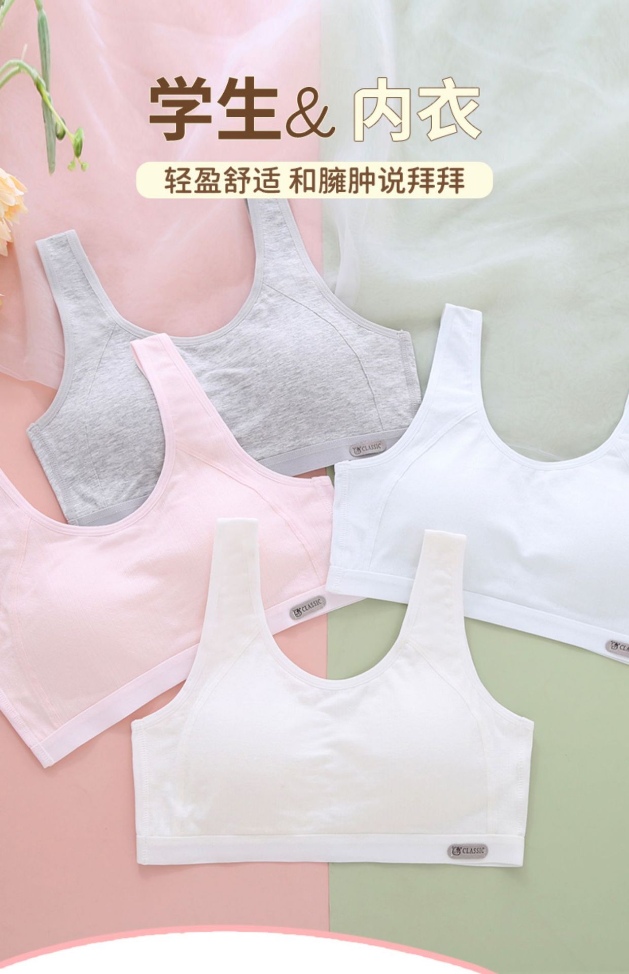 여아조끼, 중학생, 순면속옷, 사춘기학생, 고등학생, 발달기, 충격방지브라, 얇은스토어 가기